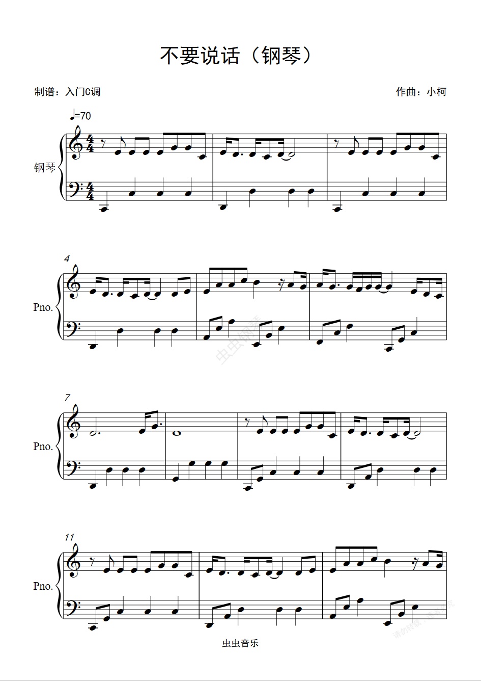 钢琴谱:陈奕迅《不要说话》C调简单版