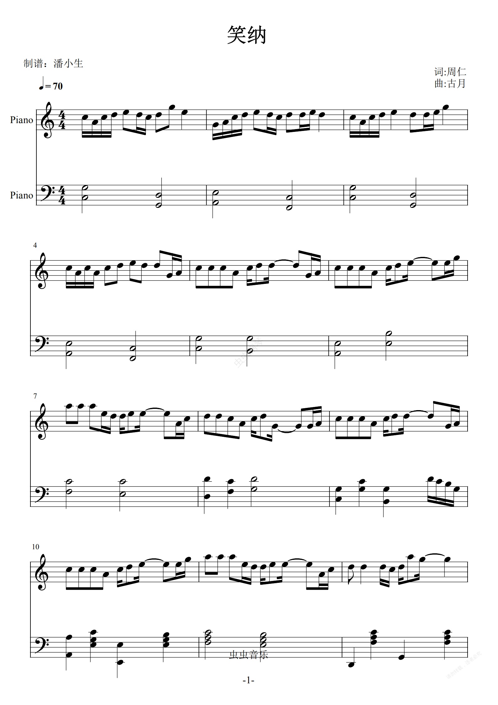 钢琴谱:笑纳 C调 简化版 独奏版 花僮 公子是你吗 五线谱 钢琴谱