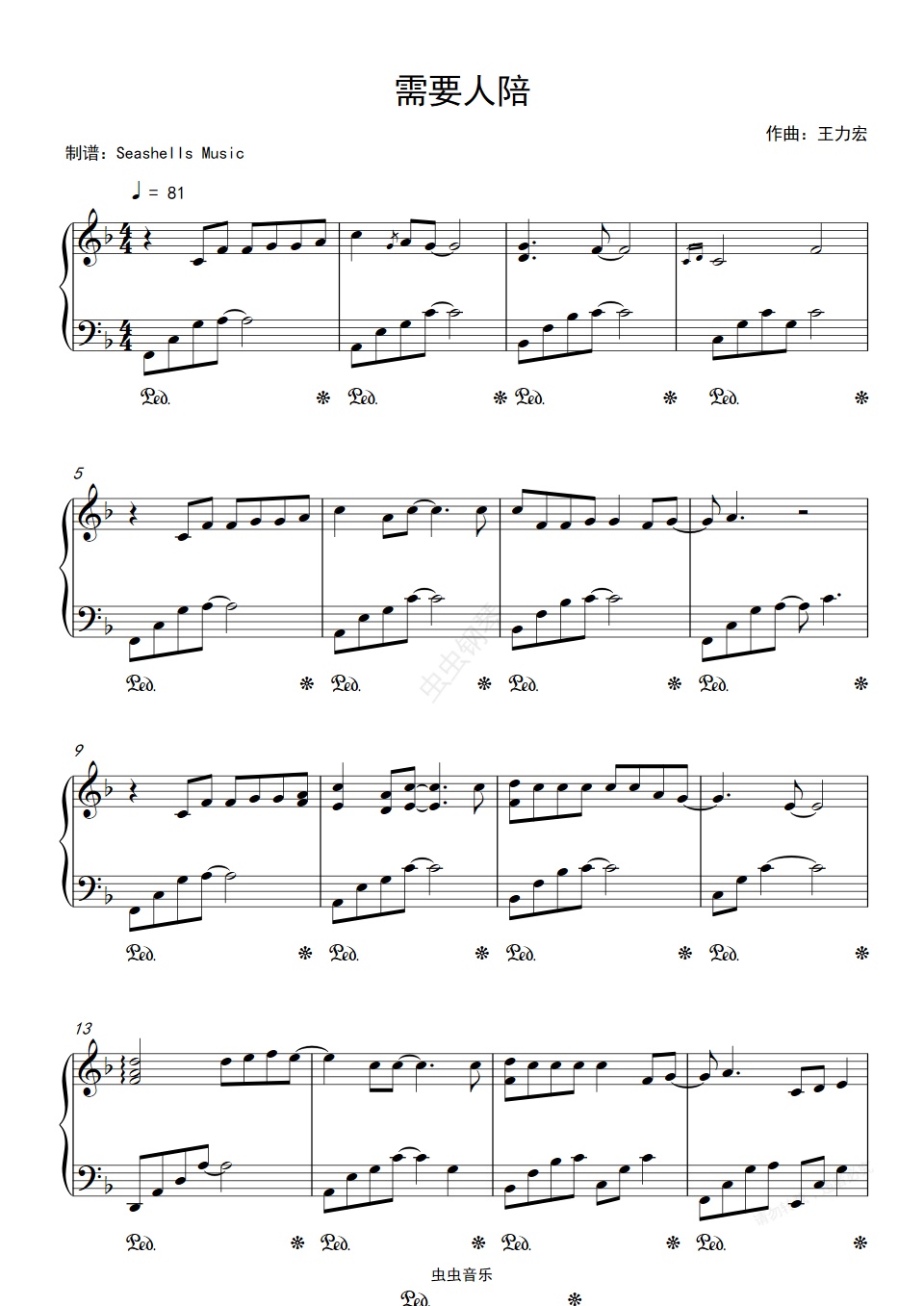 钢琴谱:王力宏-《需要人陪》精编钢琴独奏
