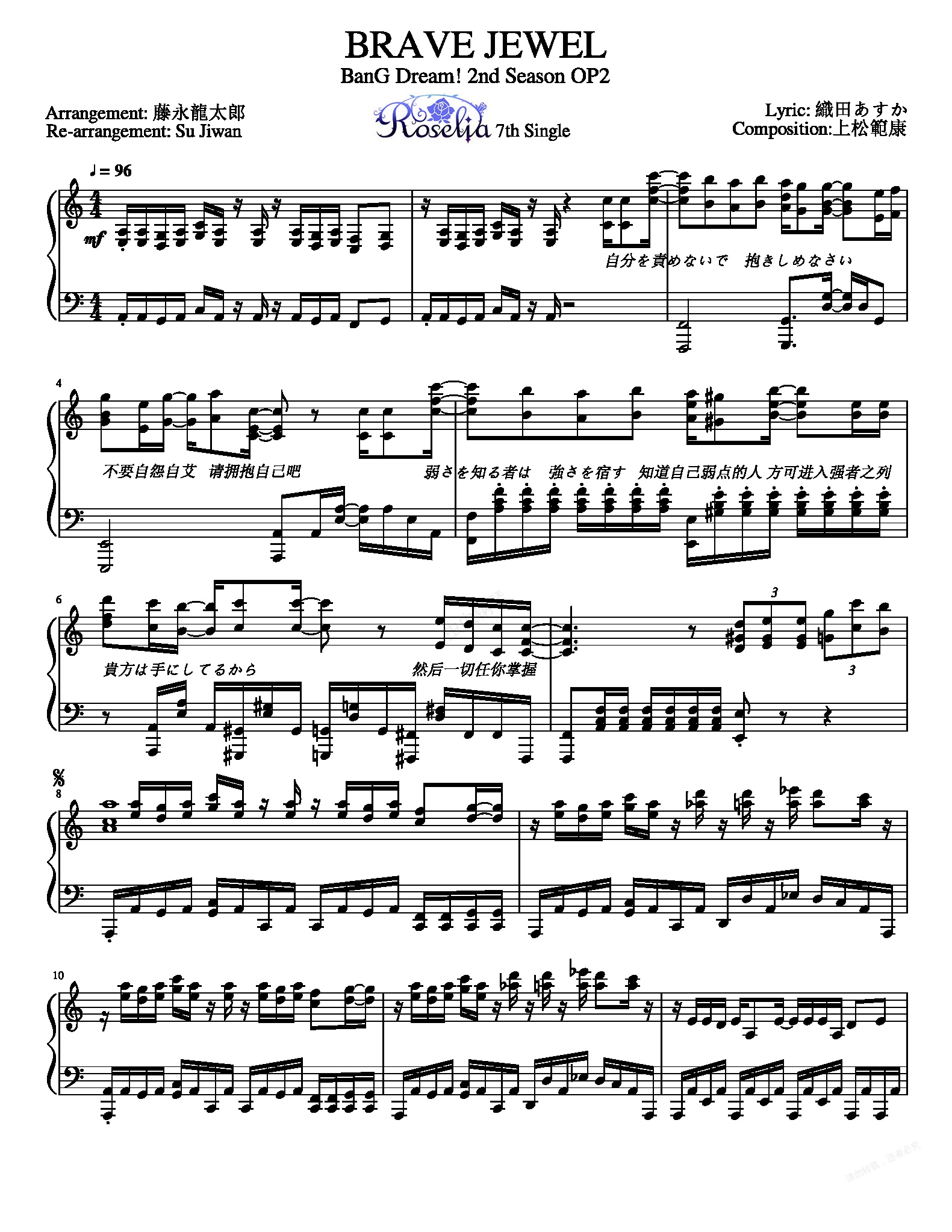 钢琴谱:[BanG Dream!] BRAVE JEWEL
