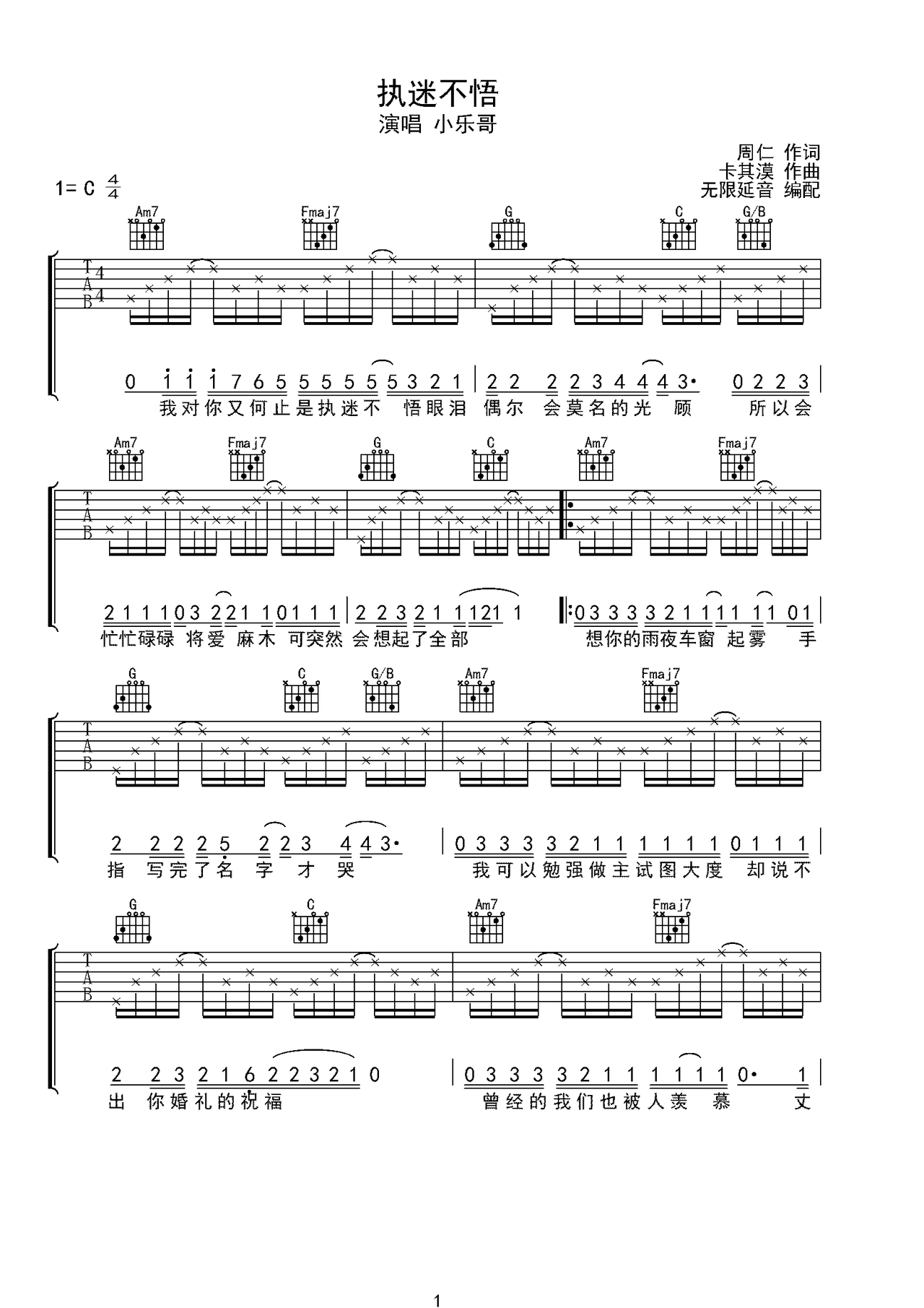 您的位置: 首页 > 钢琴谱库 > 小乐哥 执迷不悟 吉他谱 C调指法