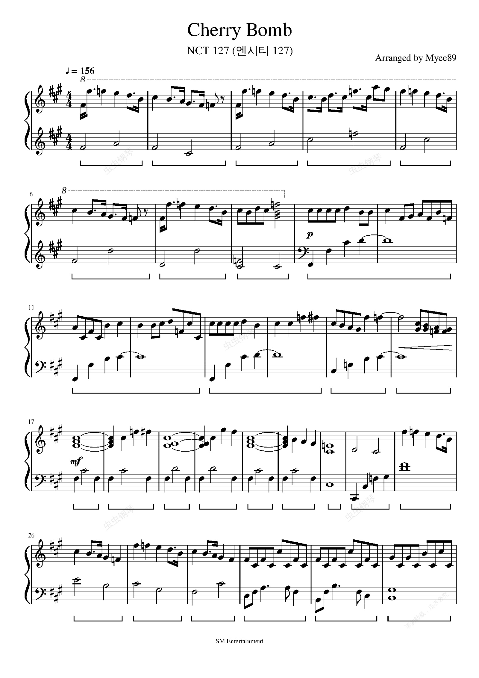 钢琴谱:【改编】NCT 127 - Cherry Bomb 钢琴谱