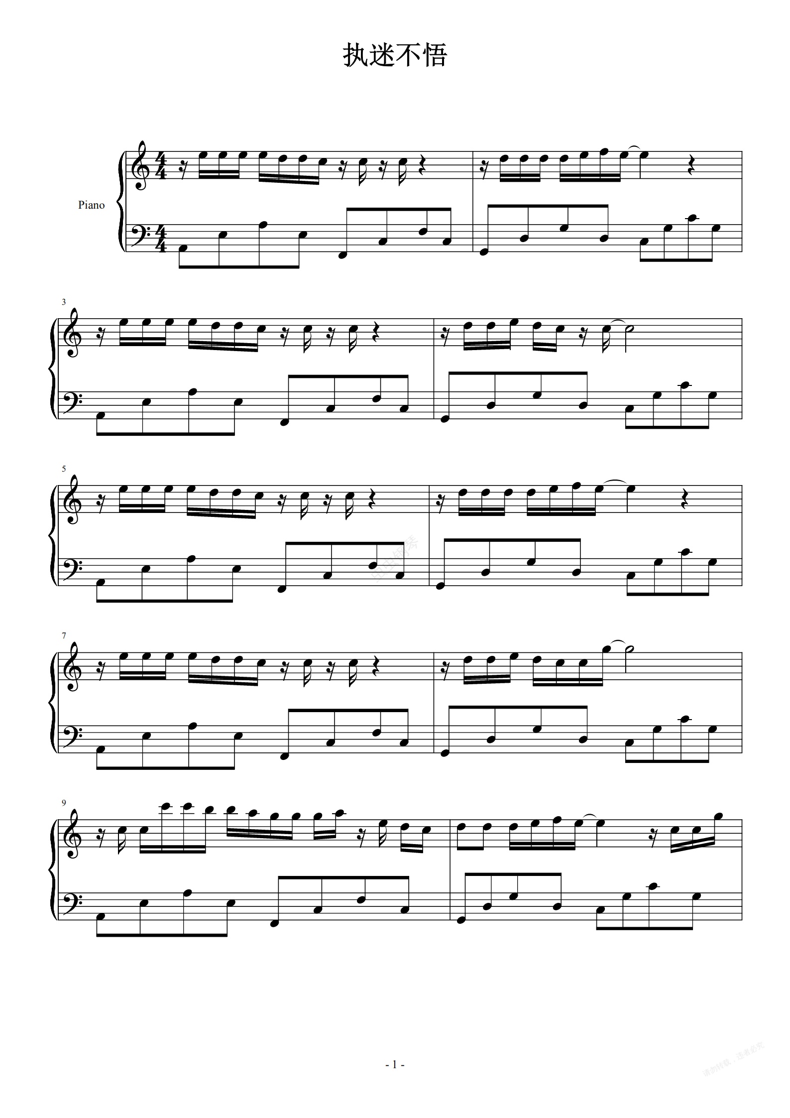 您的位置: 首页 > 钢琴谱库 > 执迷不悟