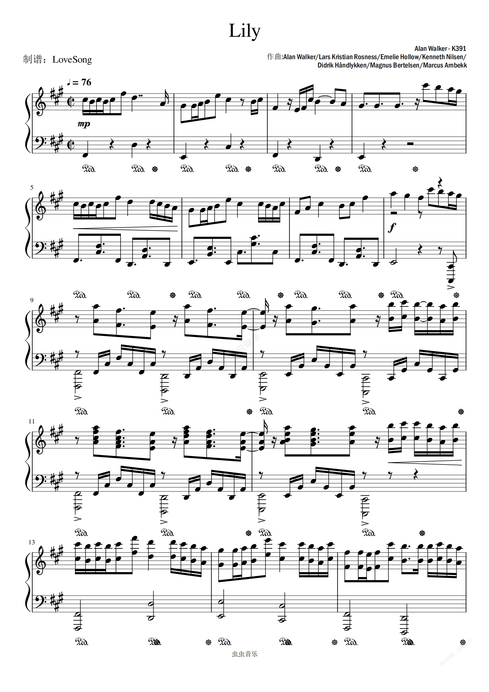 钢琴谱:Lily 钢琴谱 Alan Walker 高清原版