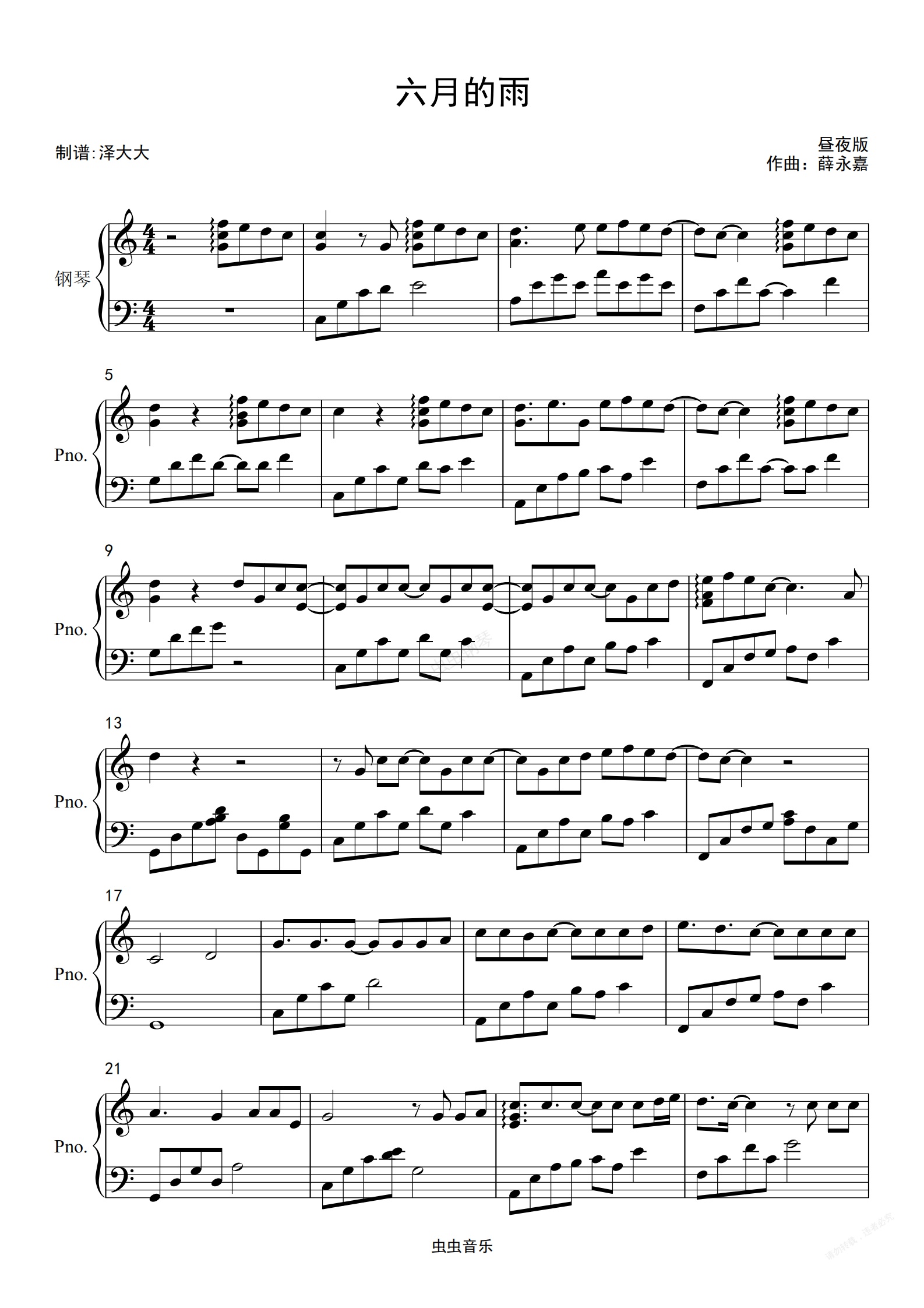 钢琴谱:六月的雨 (《仙剑奇侠传》电视剧插曲)【昼夜版独奏】
