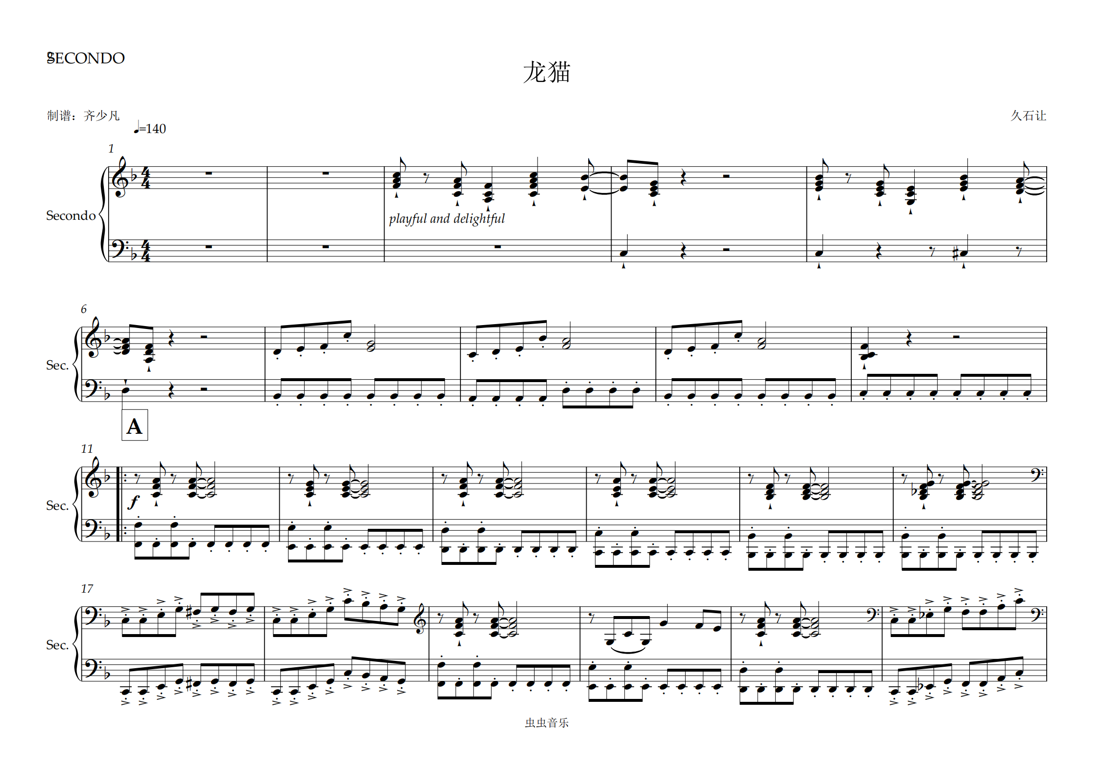 钢琴谱:【四手联弹】我邻居家的龙猫