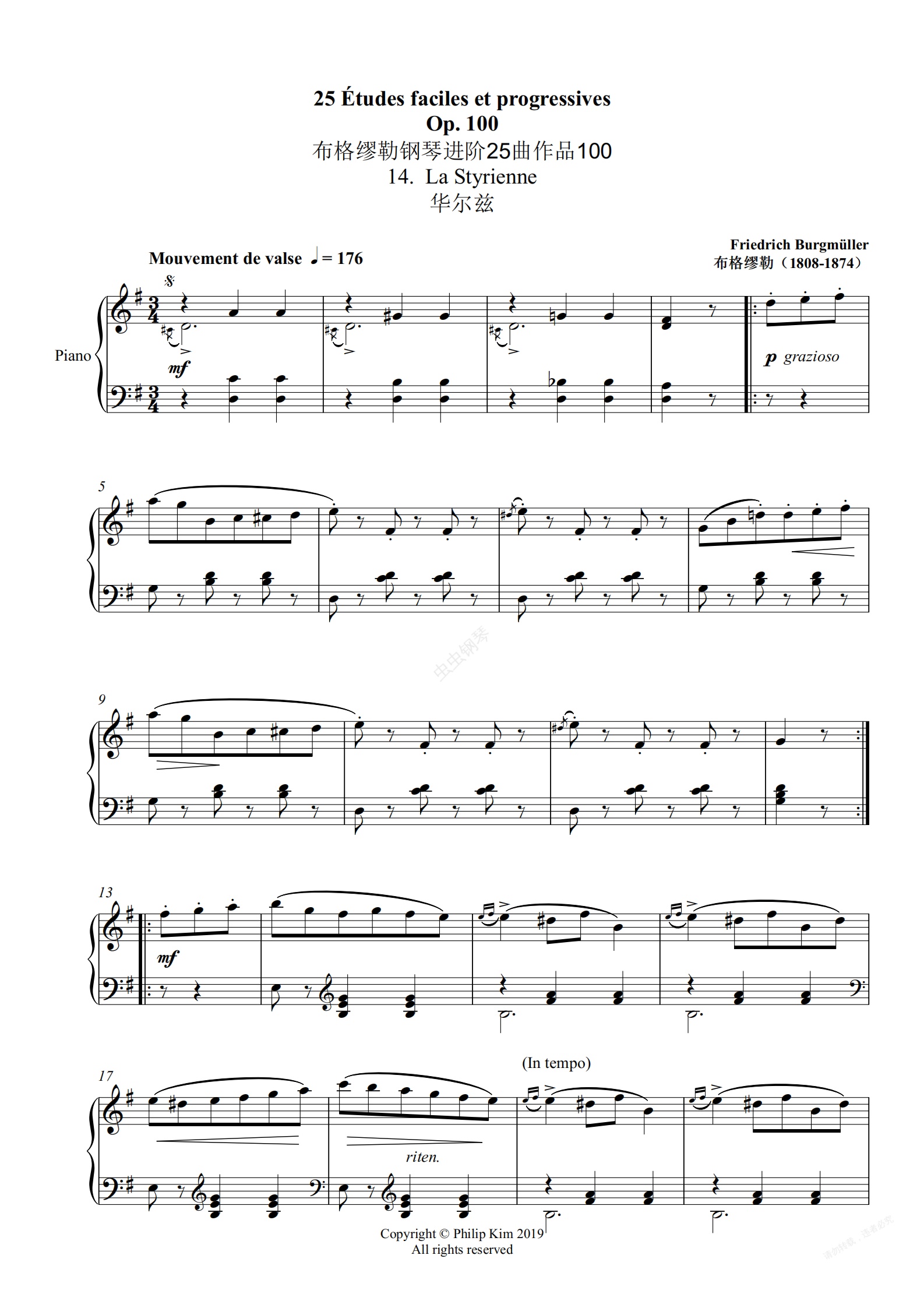 钢琴谱:【初学者】第14首 华尔兹-布格缪勒25首钢琴进阶练习曲 Op. 100