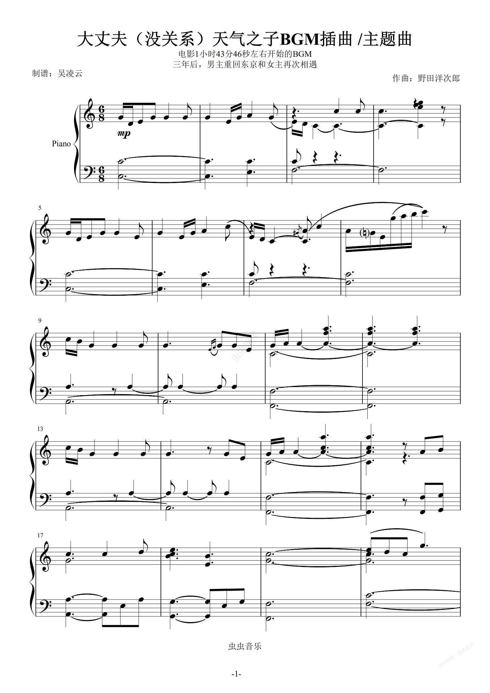 钢琴谱:大丈夫(没关系)天气之子BGM插曲 主题曲 天気の子 吴凌云制作钢琴版