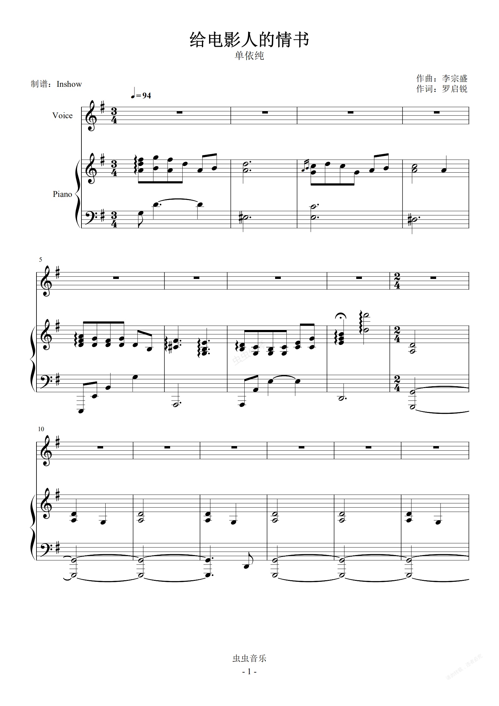 钢琴谱:给电影人的情书【弹唱】- 单以纯 -