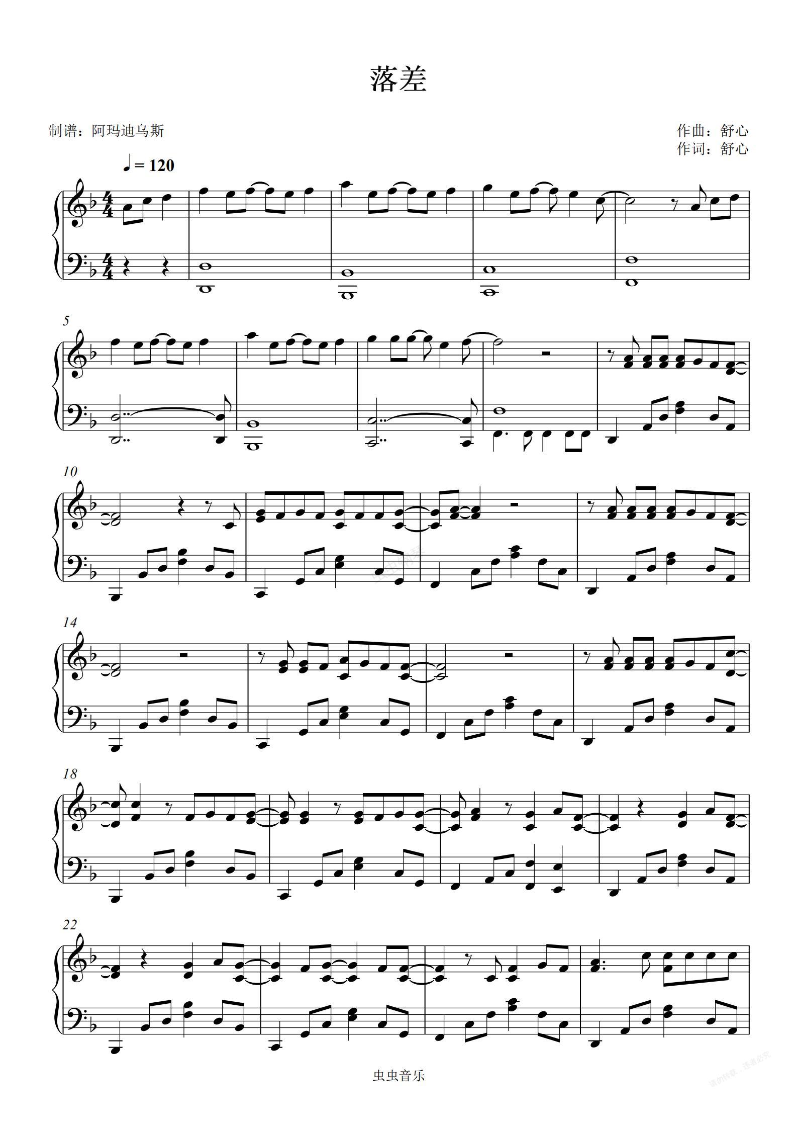 钢琴谱:INK-K / 王忻辰 <落差> 原调高还原完整版本