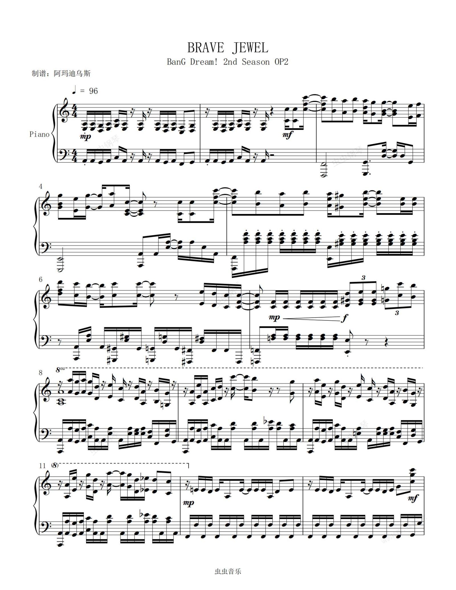 钢琴谱:BanG Dream < BRAVE JEWEL> 原调高还原完整版本