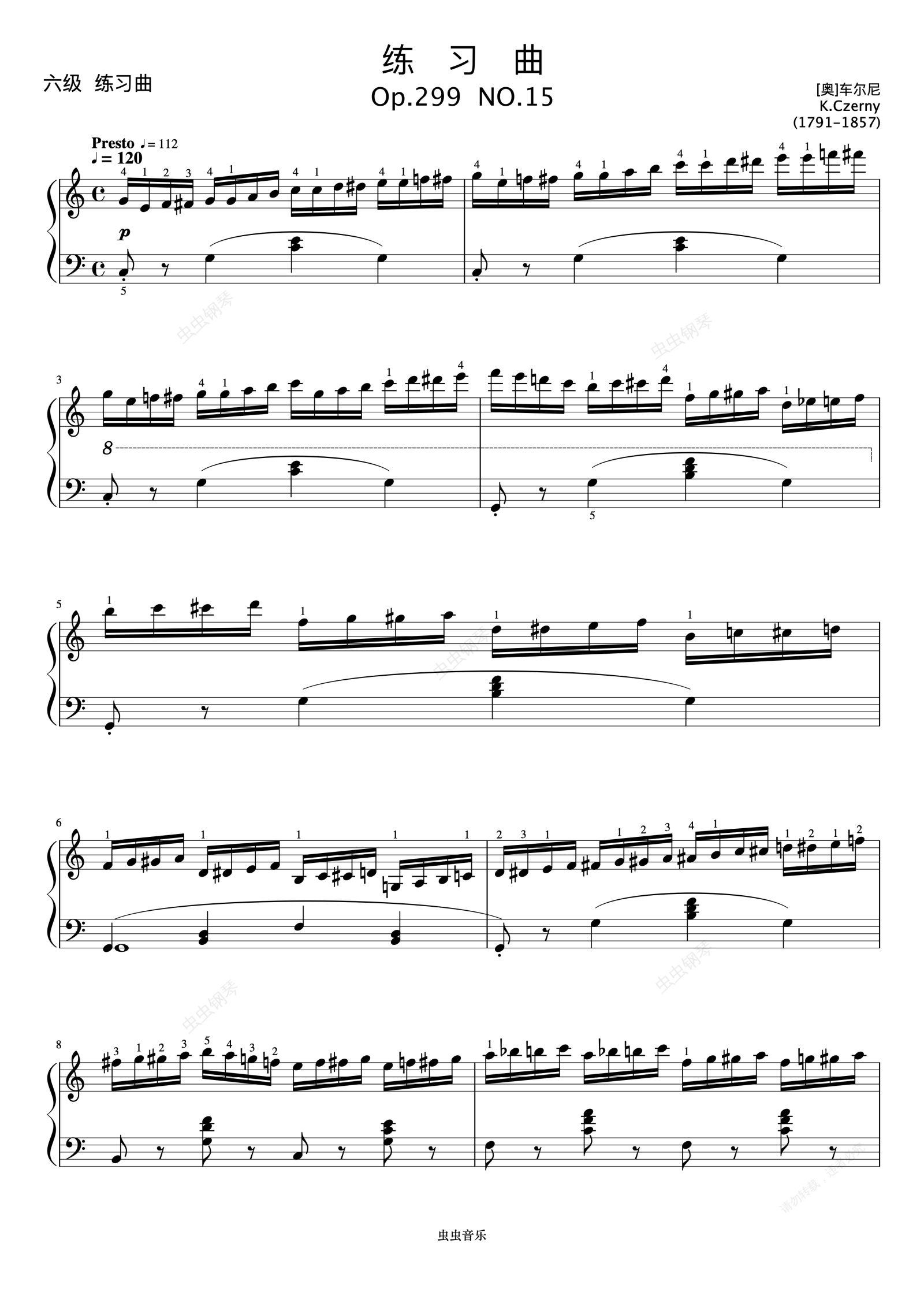 钢琴谱: 练习曲 Op.299 No.15《 ZYY 钢琴考级曲目 1》