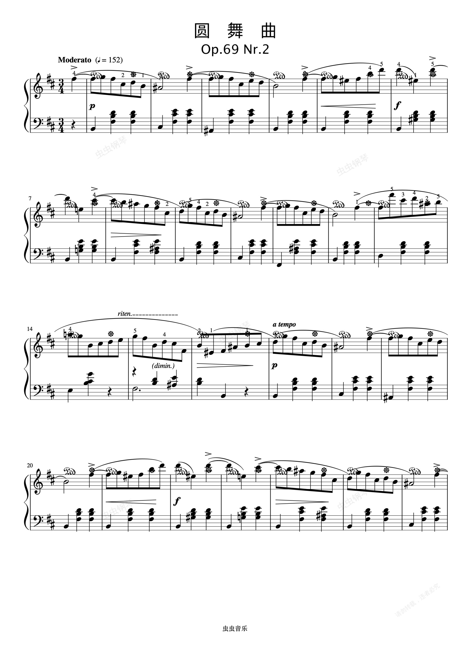 钢琴谱:圆舞曲 Op.69 No.2《肖邦圆舞曲集》