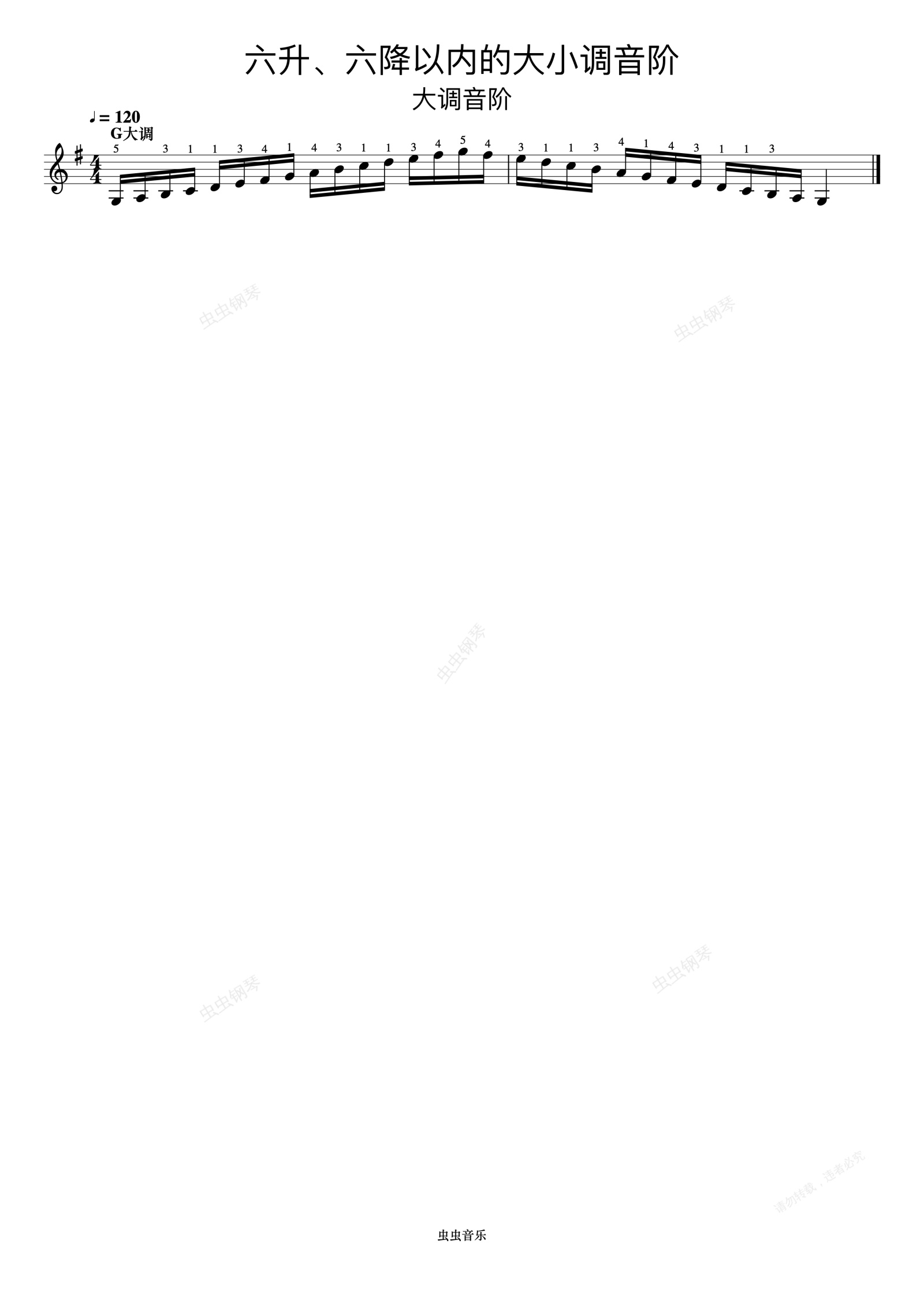 钢琴谱:六升、六降以内的大小调音阶02《什密特钢琴手指练习》