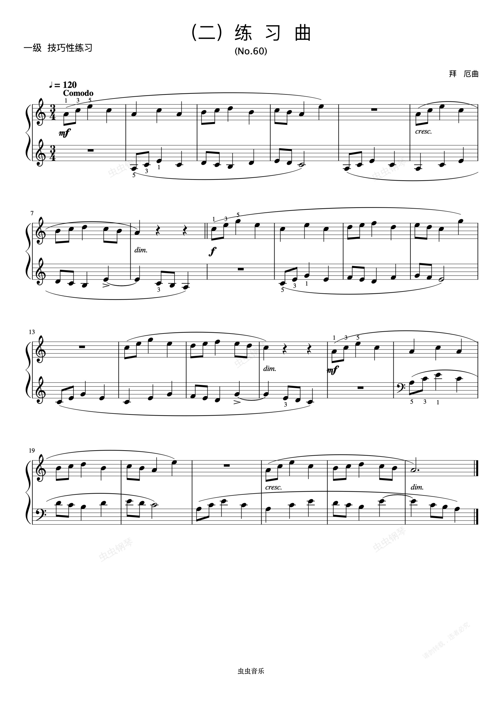 钢琴谱:1级 练习曲 No.60《音协钢琴考级曲目 1-5级》