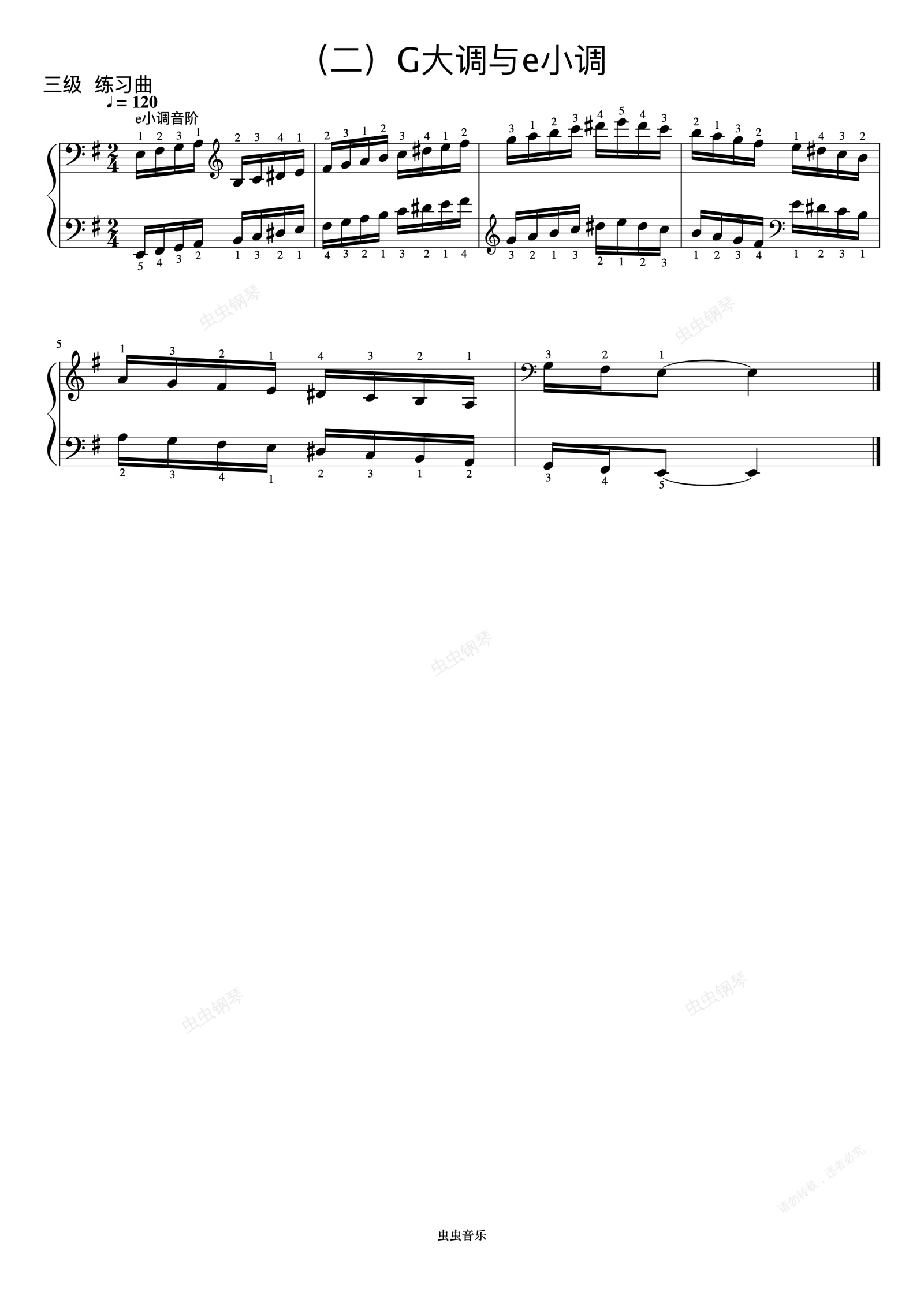 钢琴谱:3级 e小调音阶《音协钢琴考级曲目 1-5级》