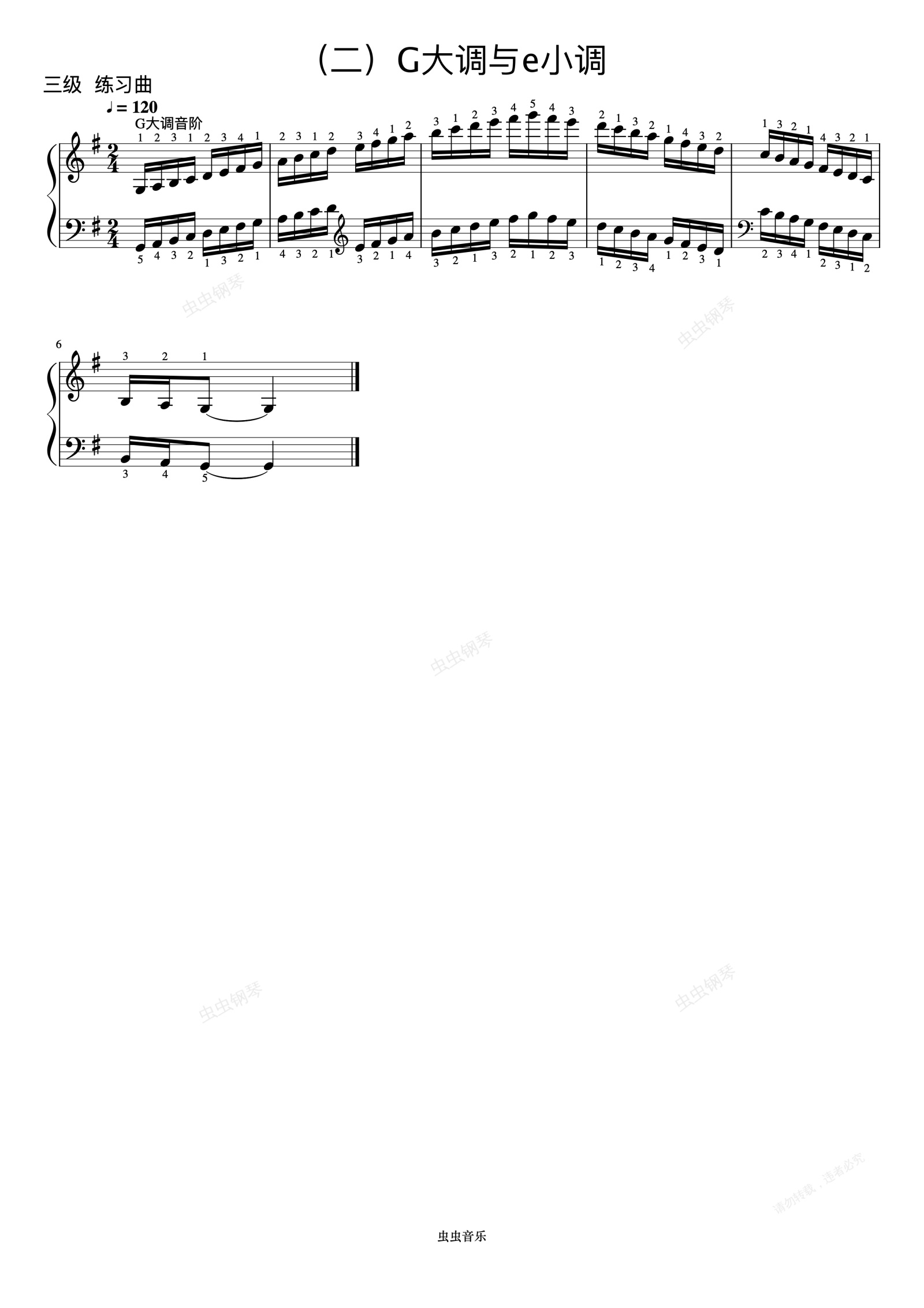 钢琴谱:3级 G大调音阶《音协钢琴考级曲目 1-5级》
