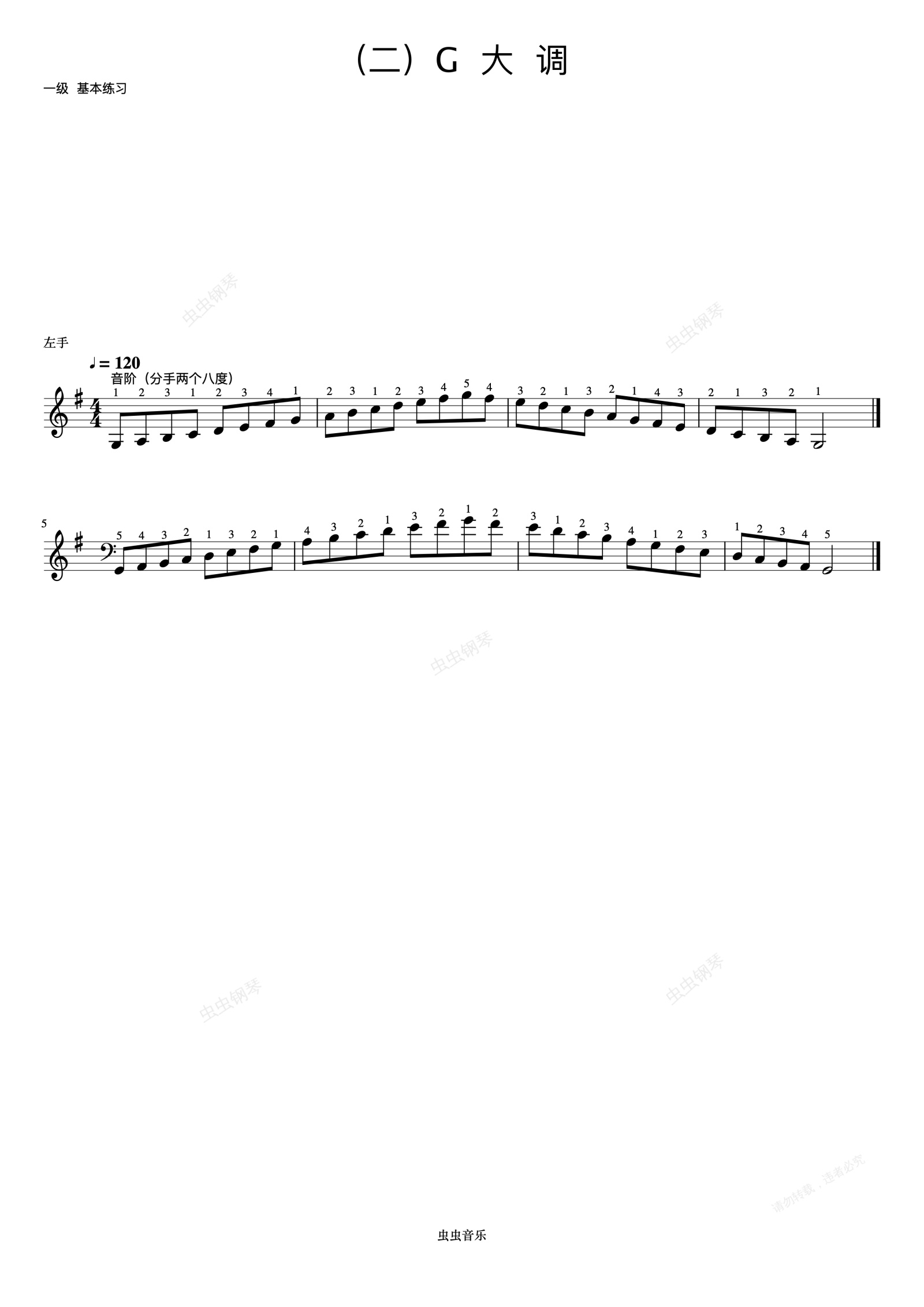 钢琴谱:1级 G大调音阶《音协钢琴考级曲目 1-5级》