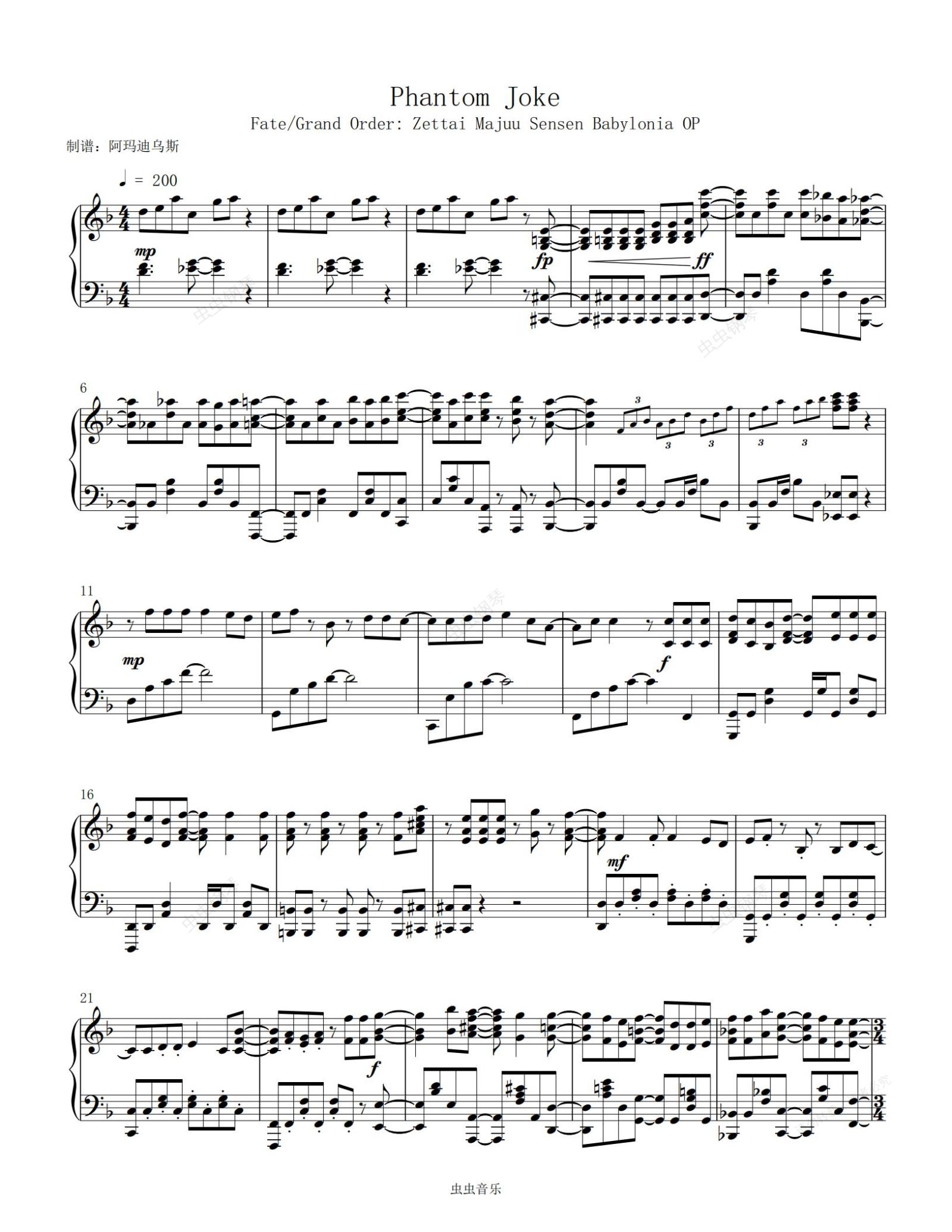 钢琴谱:Fate Grand Order < Phantom Joke > 原调高还原完整版本