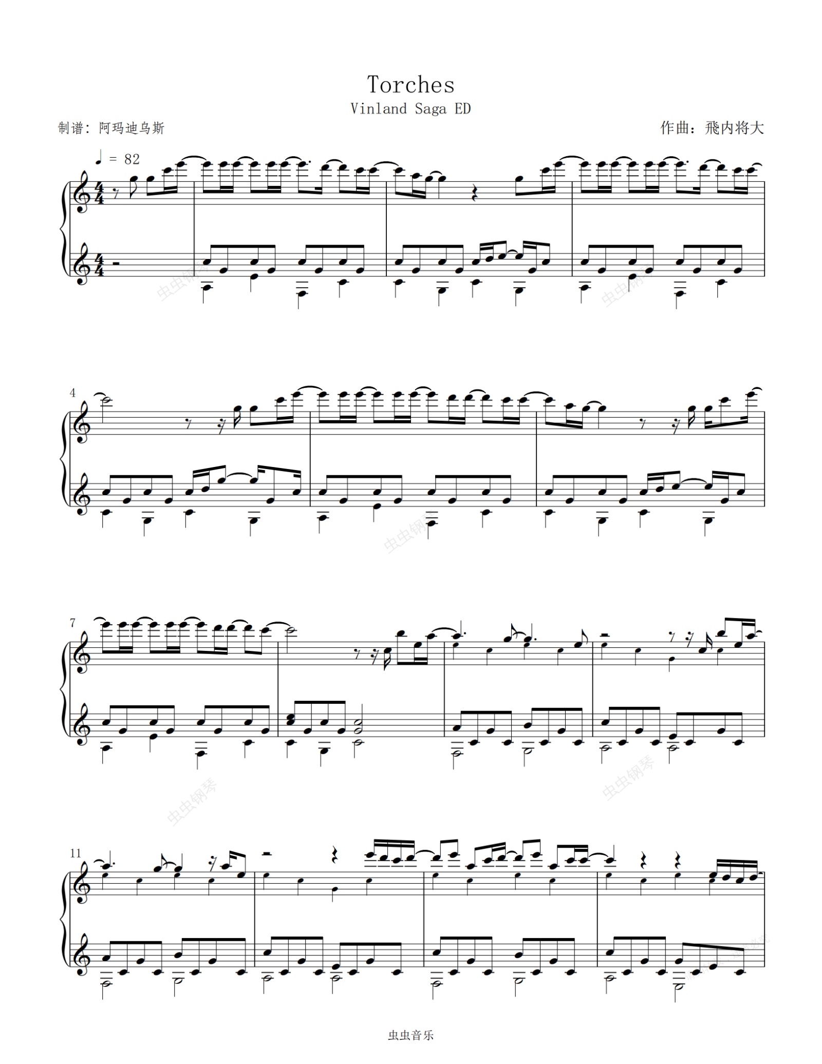 钢琴谱:冰海战记 ED < Torches > 原调高还原完整版本