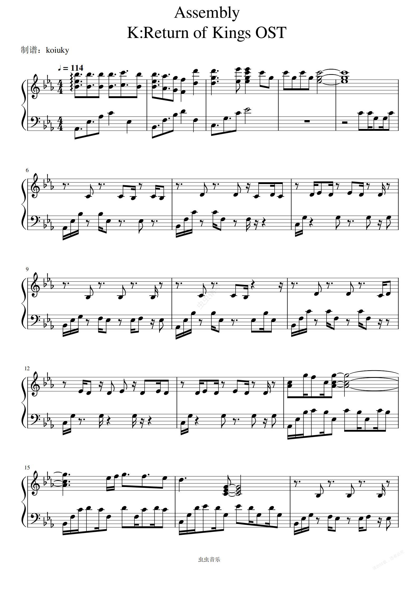 钢琴谱:K 第二季Return of Kings PV Ep 1 OST完整钢琴谱