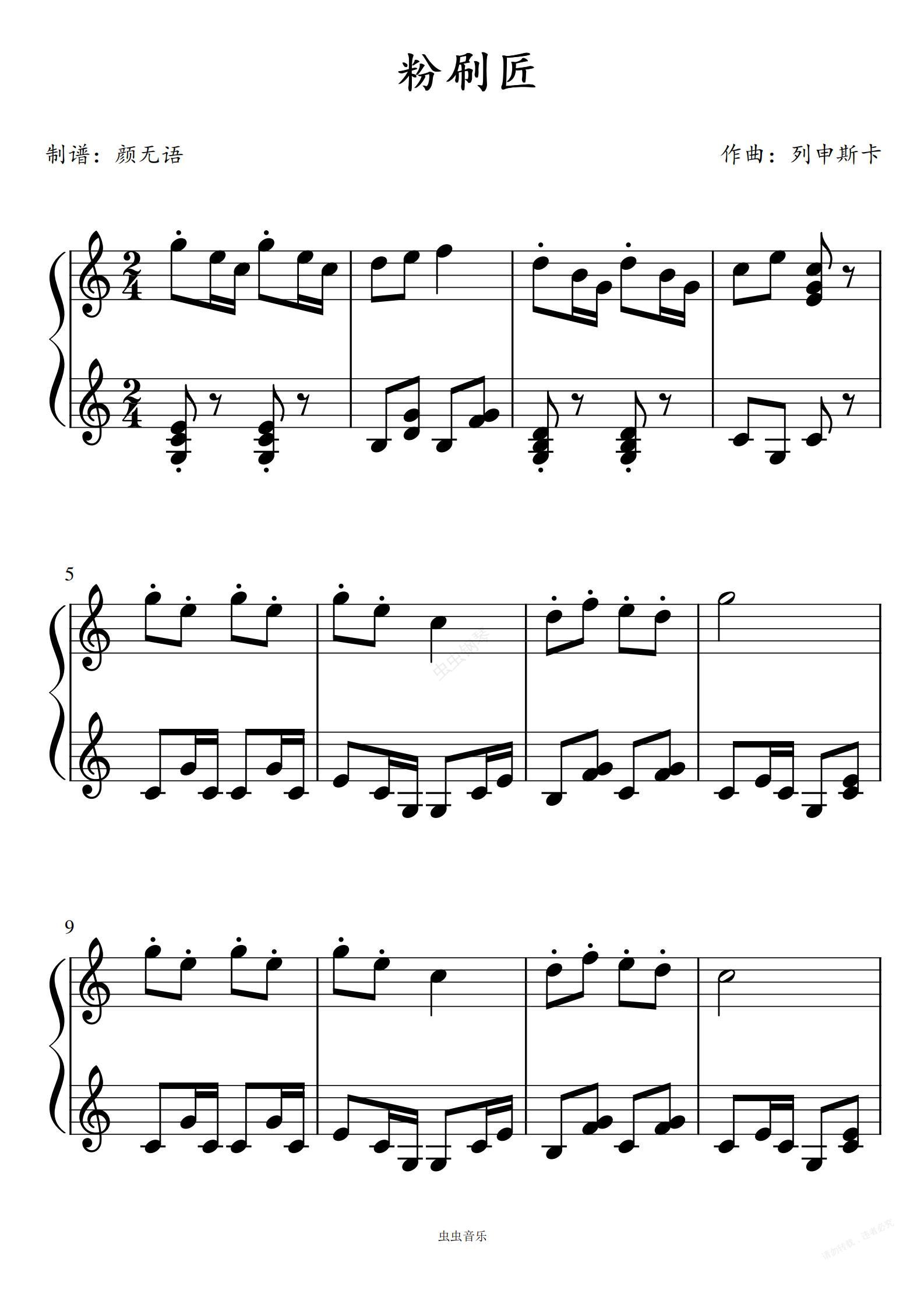 钢琴谱:粉刷匠 C调 简单适合小朋友