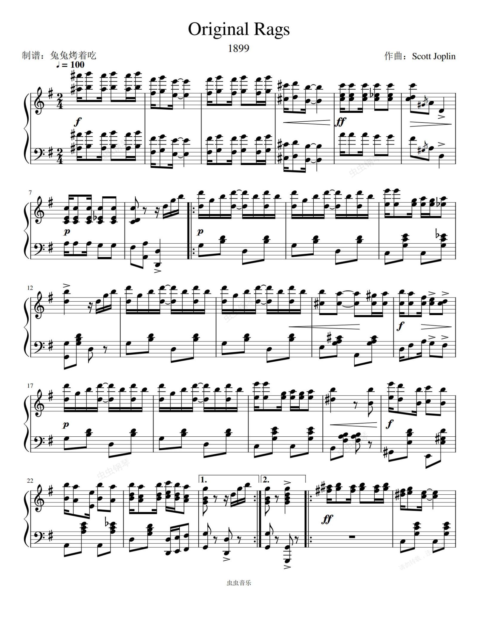 钢琴谱:Original Rags 爵士音乐ScottJoplin经典之作Ragtime