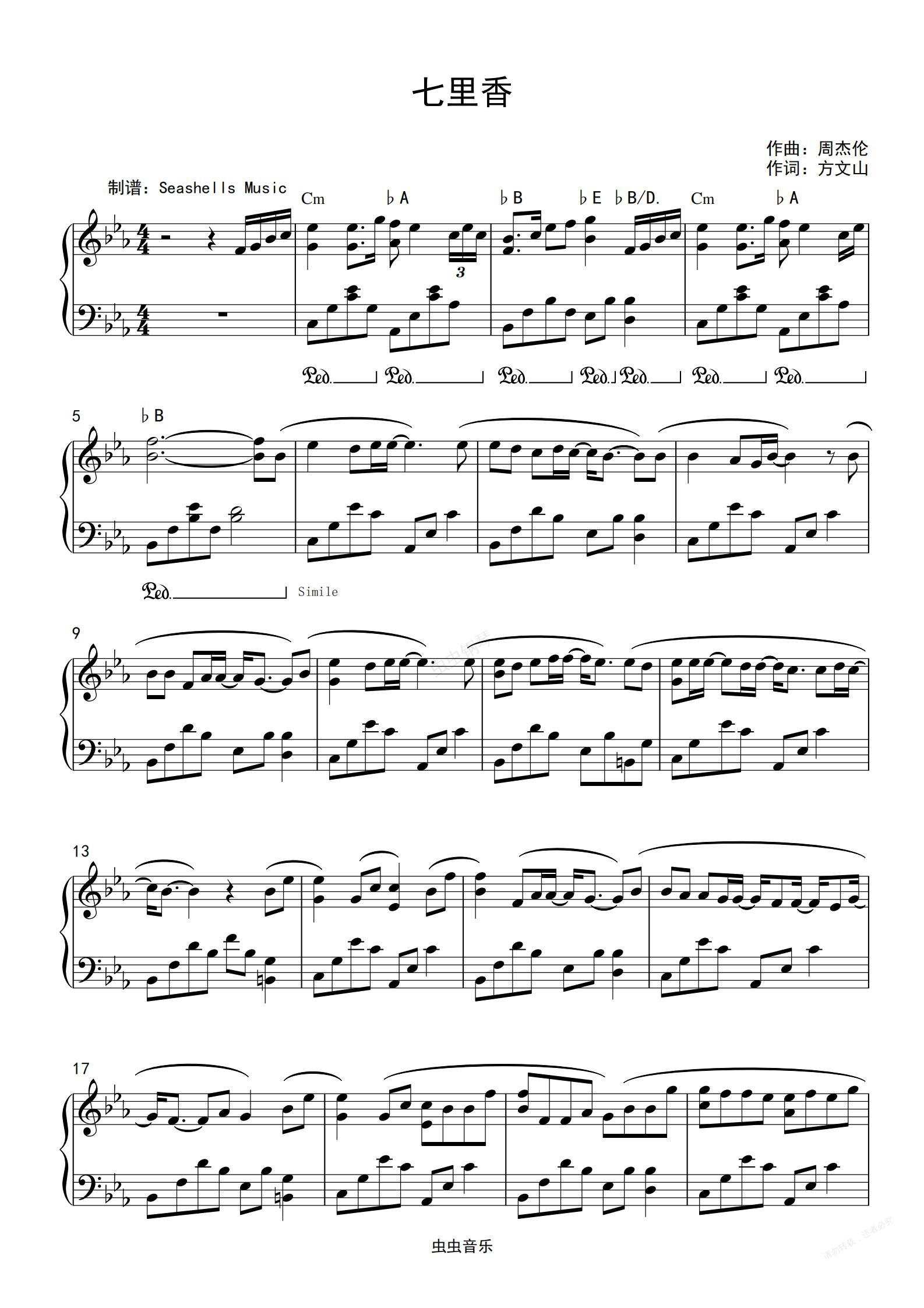 钢琴谱:周杰伦-《七里香》精编钢琴独奏