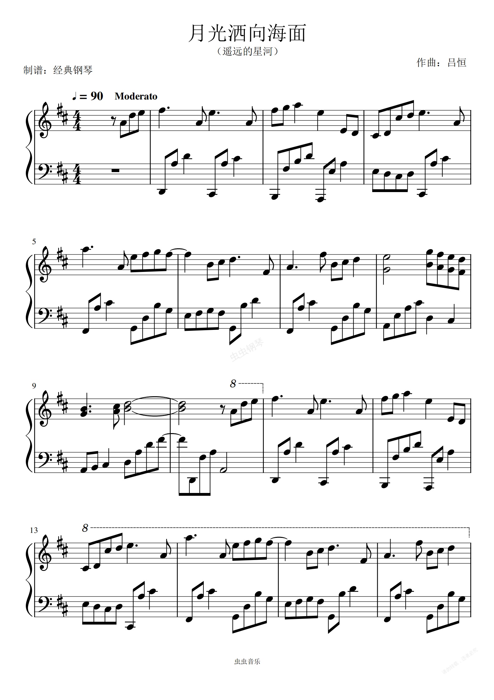 钢琴谱:月光洒向海面【原谱】