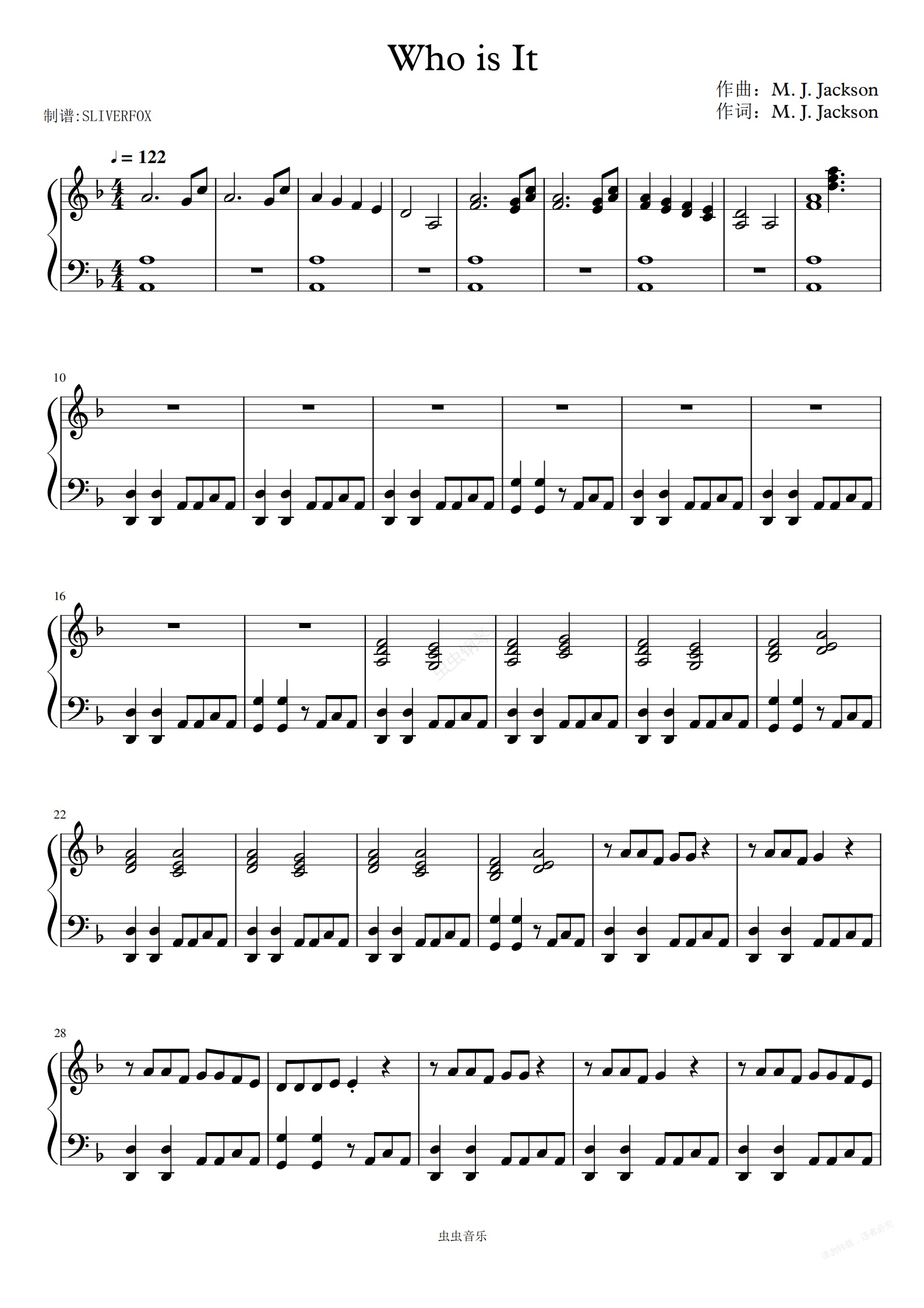 钢琴谱:《Who is It》 迈克尔·杰克逊简易完整版