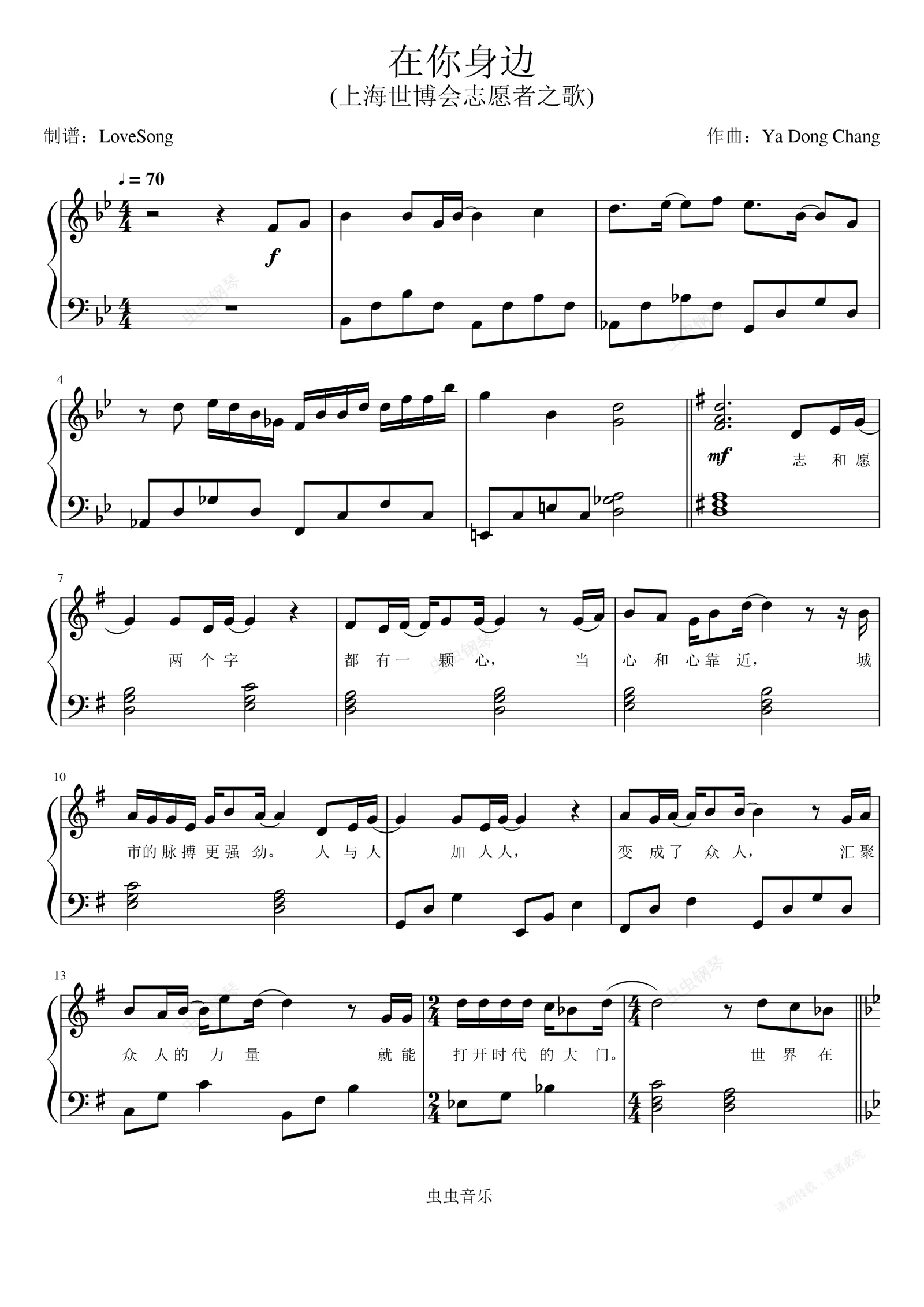 钢琴谱:陈奕迅 在你身边 带歌词