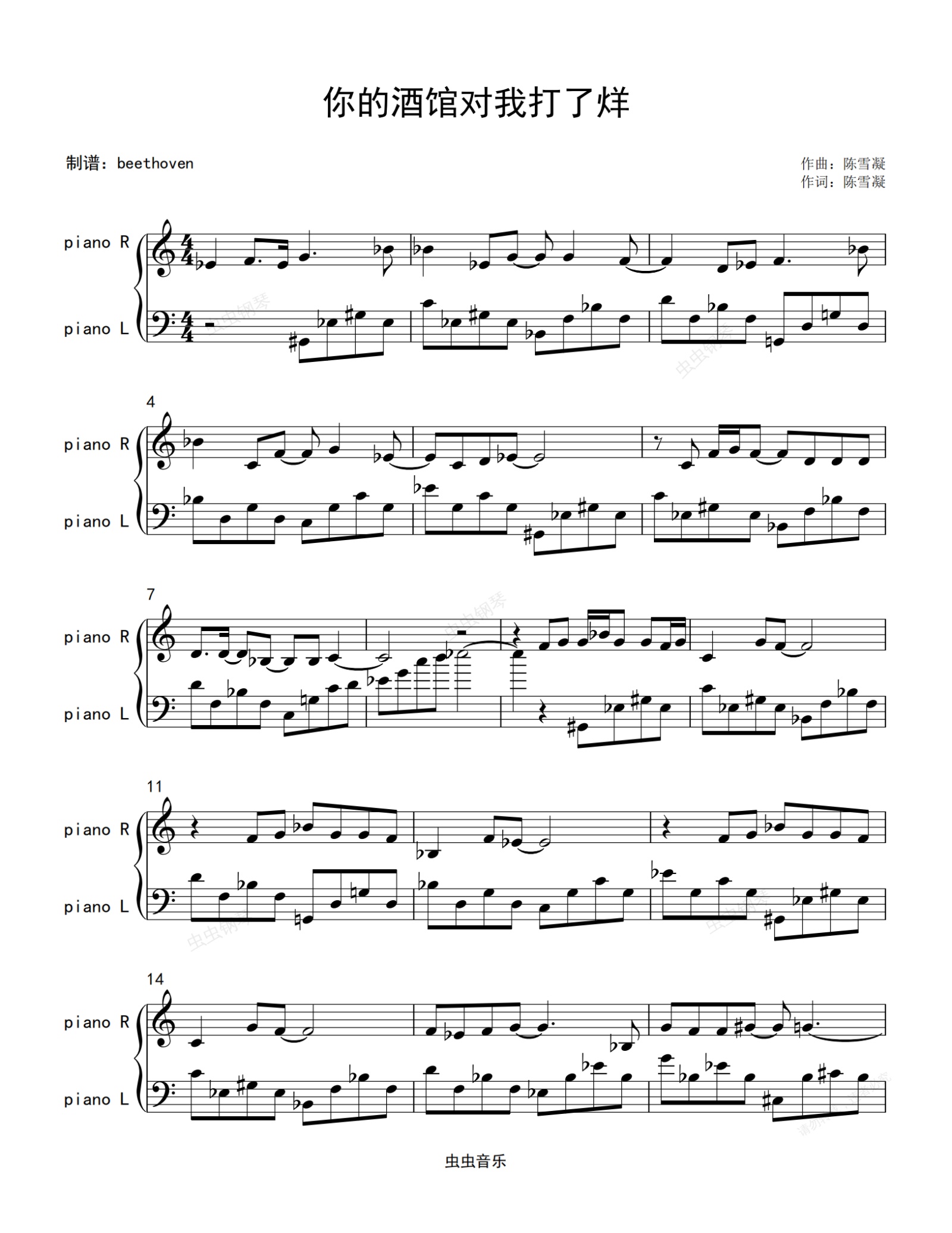 钢琴谱:你的酒馆对我打了烊(完美)陈雪凝