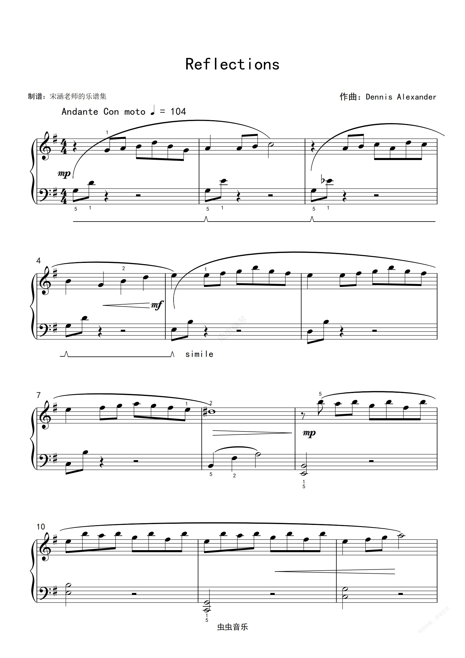 钢琴谱:Reflections