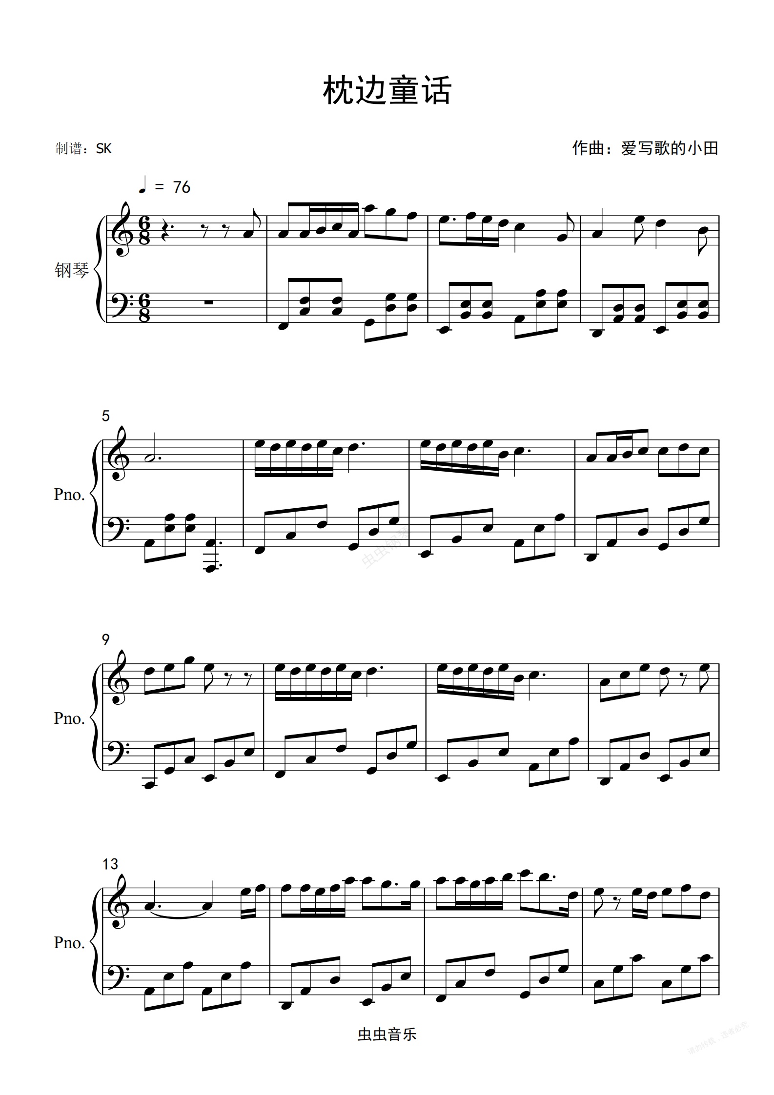钢琴谱:小田音乐社《枕边童话》C调简单版