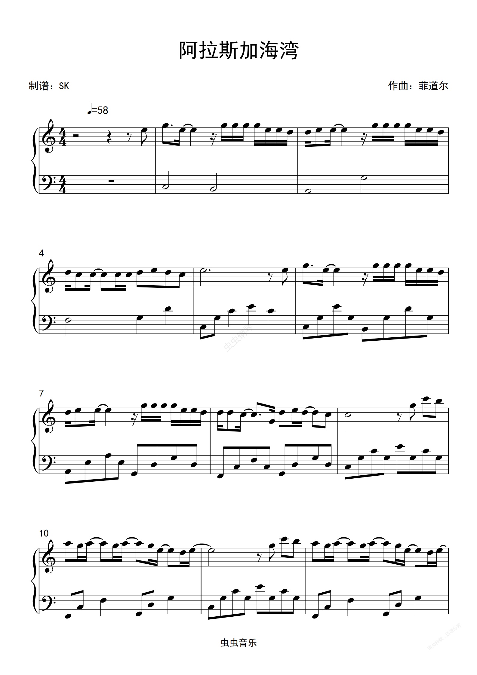 钢琴谱:蓝心羽《阿拉斯加海湾》C调简单版
