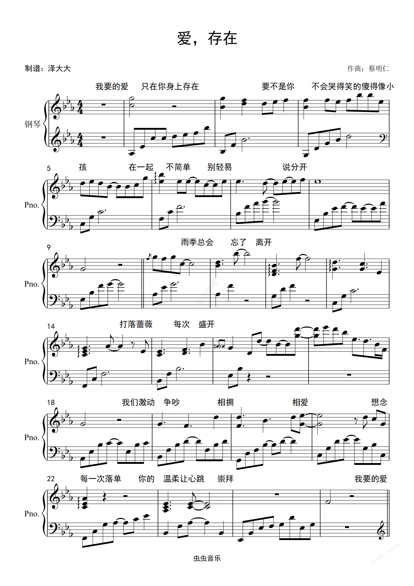 钢琴谱:爱,存在【完美弹唱伴奏附词】