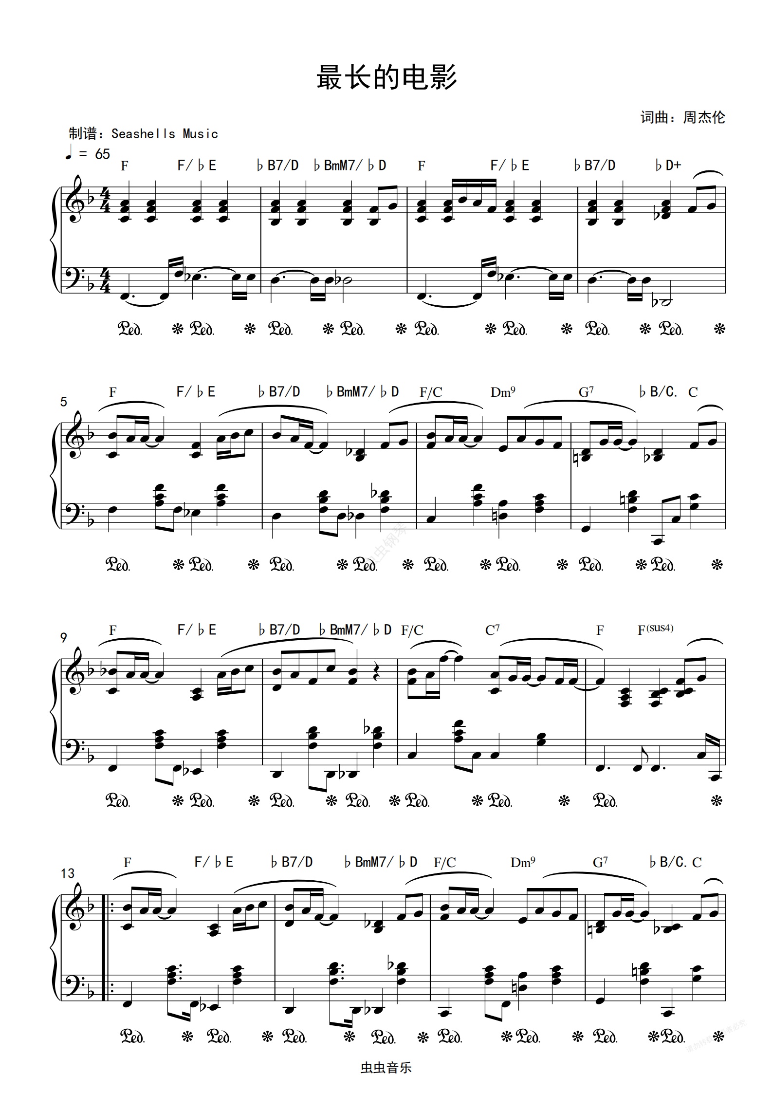 钢琴谱:周杰伦-《最长的电影》精编钢琴独奏
