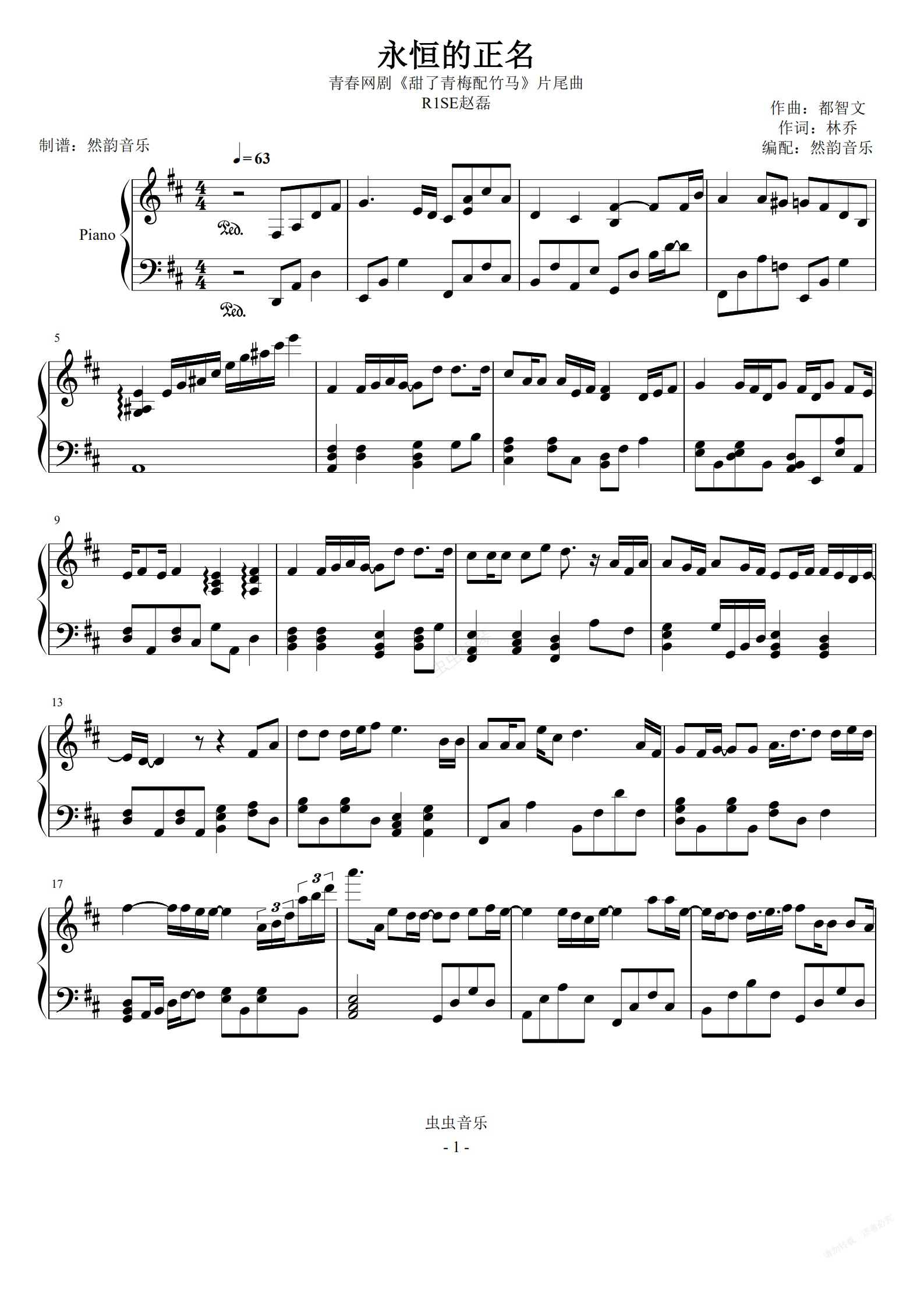 钢琴谱:永恒的正名-R1SE赵磊 钢琴完美还原(青春网剧《甜了青梅配竹马》片尾曲)