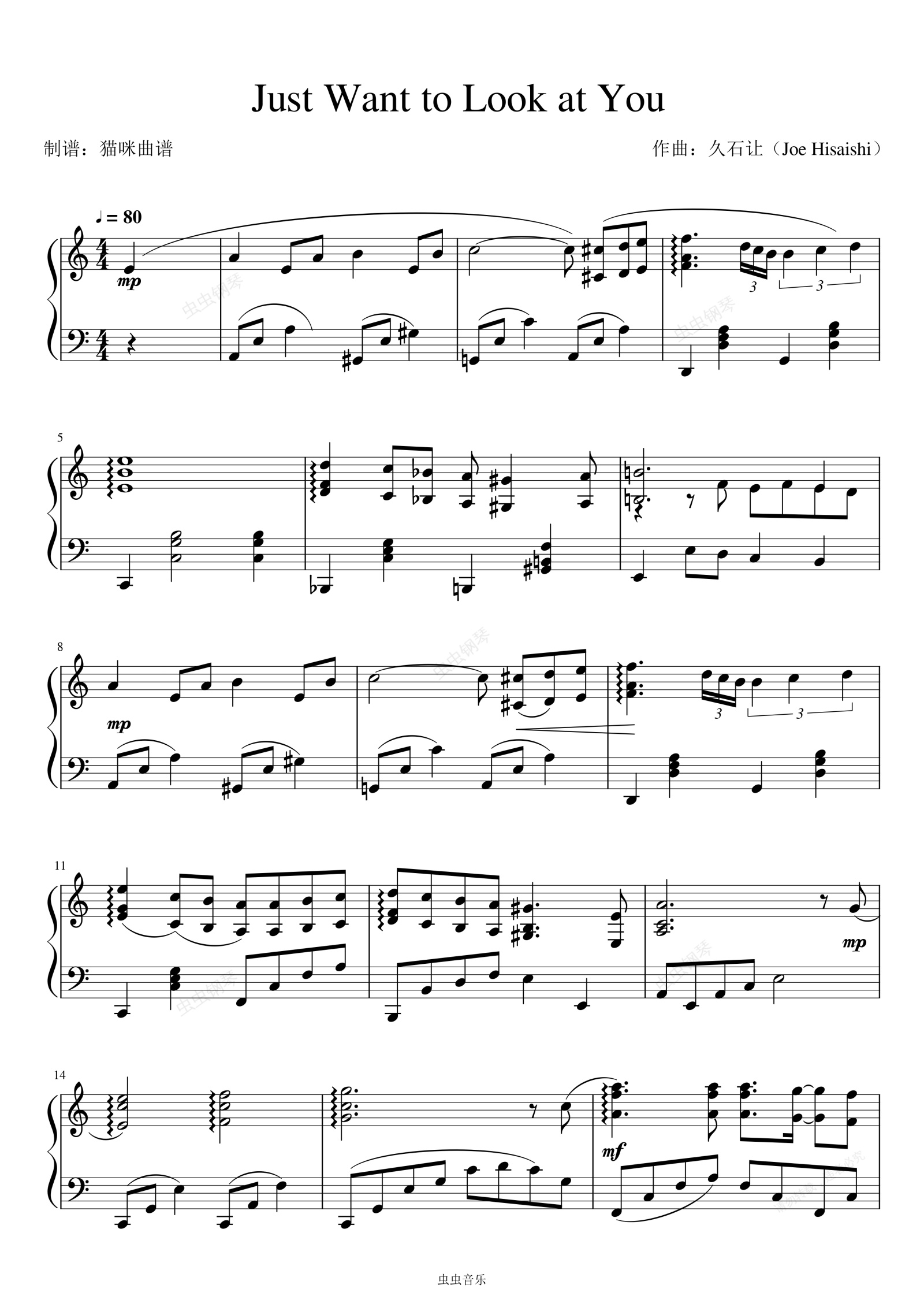 钢琴谱:久石让-《Just Want to Look at You》C调