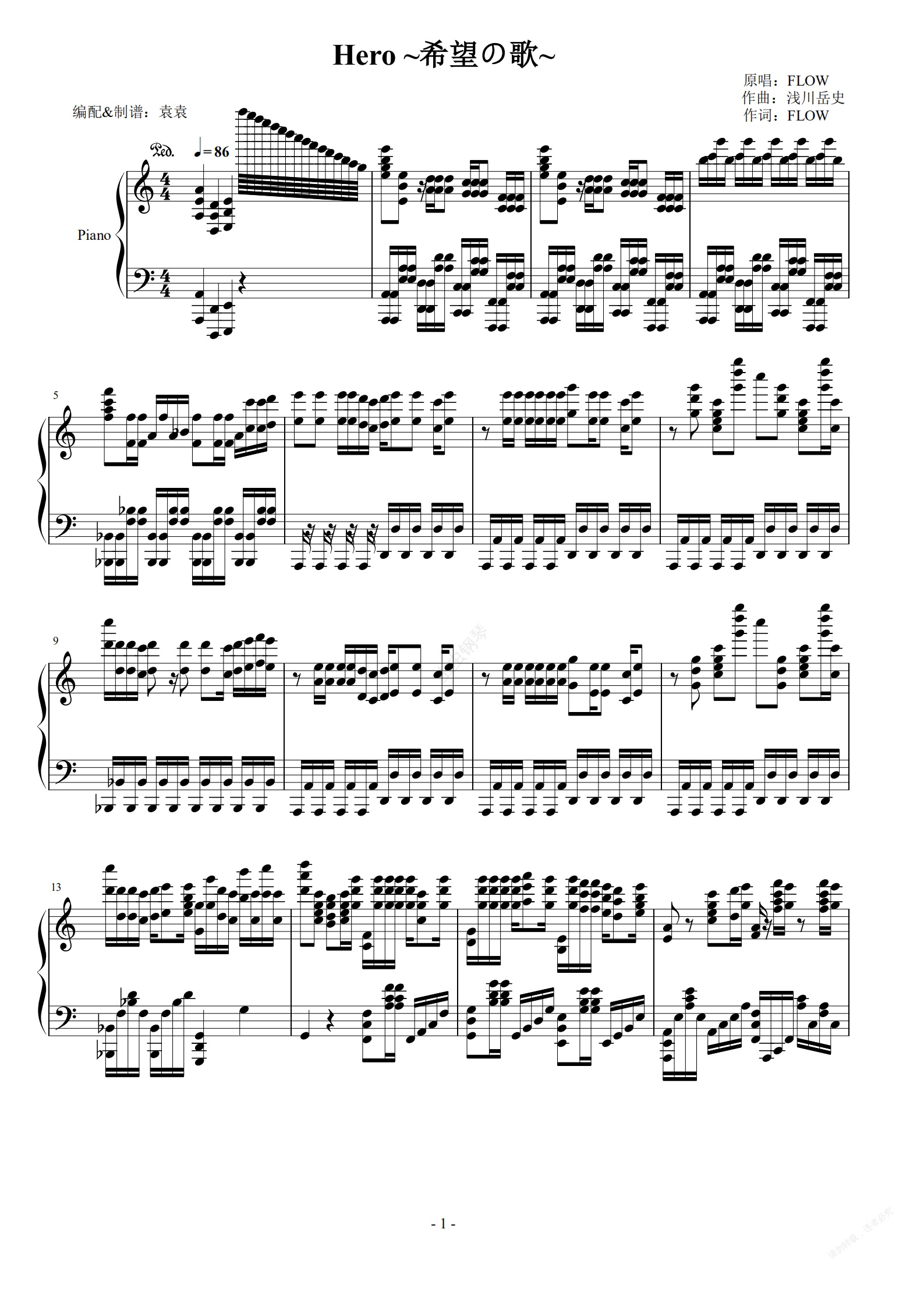 钢琴谱:Hero ~希望の歌~(龙珠:神与神 - 电影主题曲)