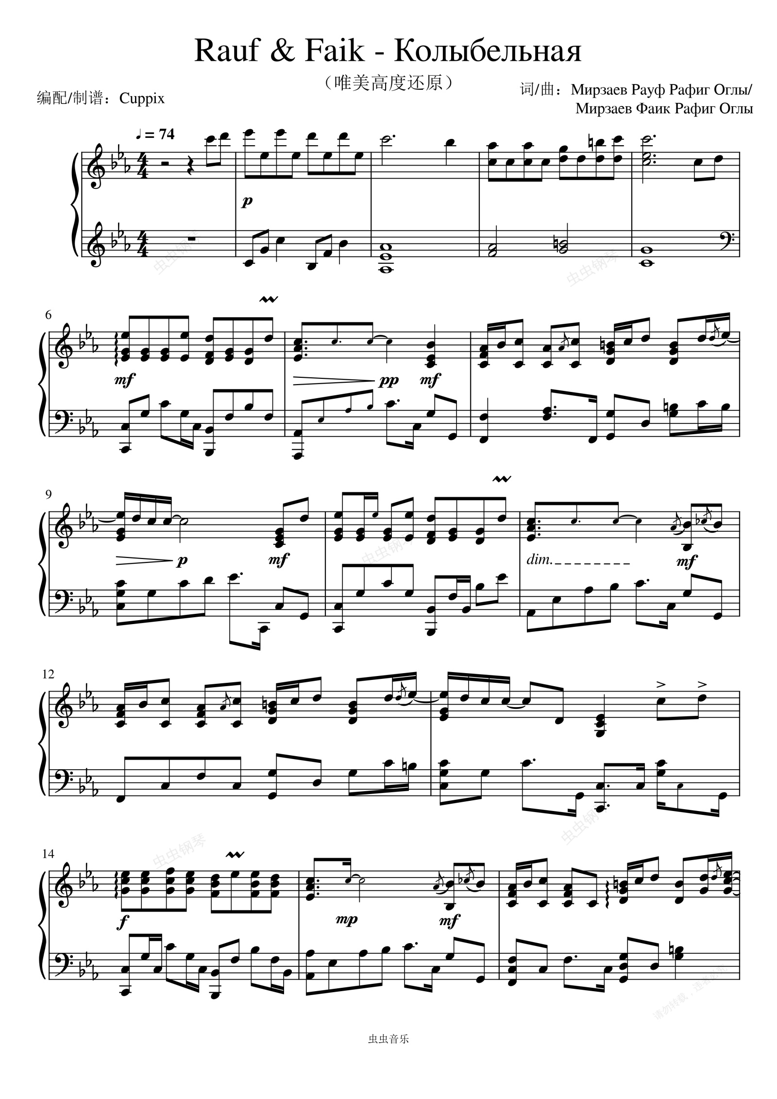 钢琴谱:Колыбельная - Cuppix改编 - 唯美高度还原(Rauf & Faik,俄罗斯摇篮曲)