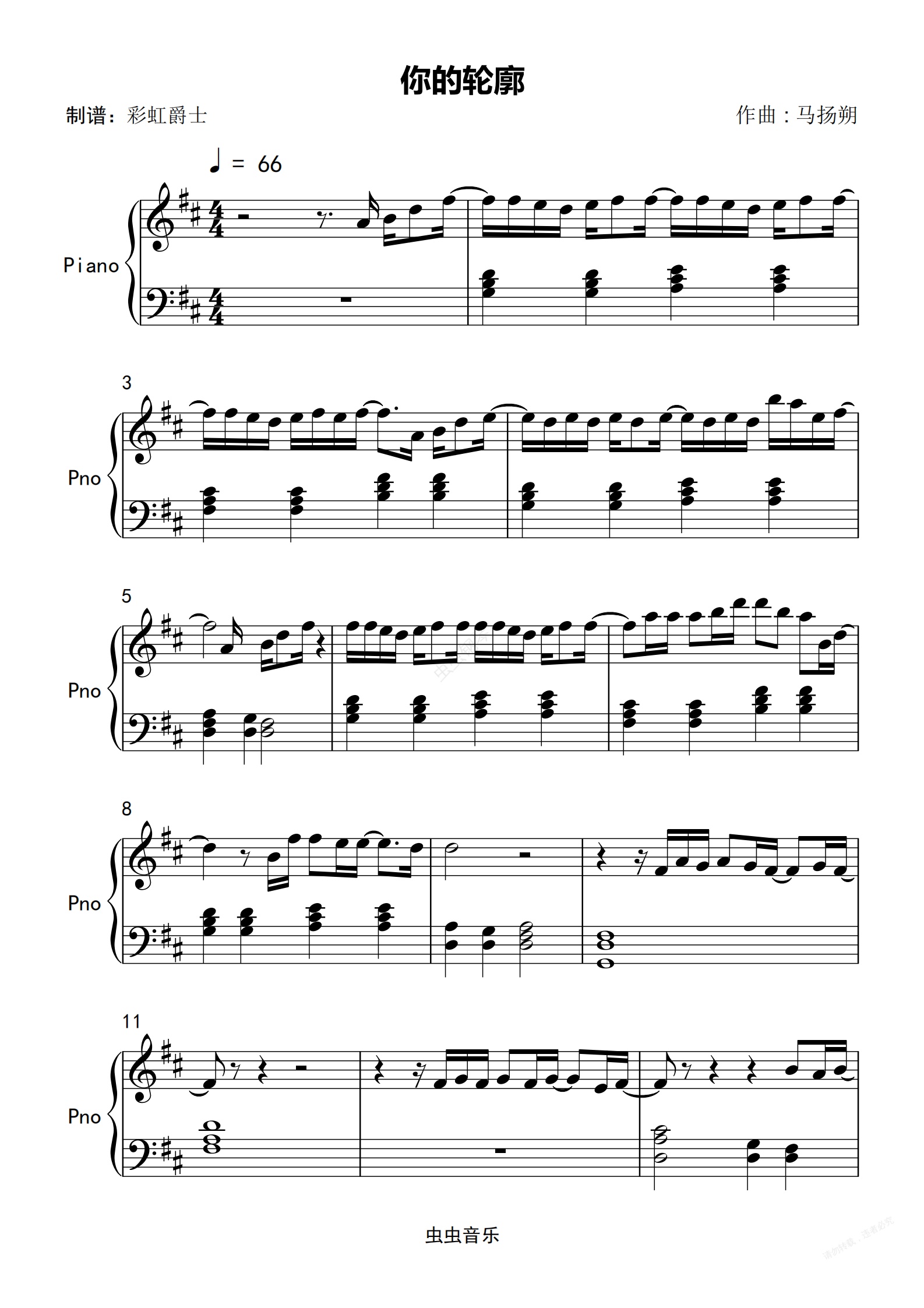 钢琴谱:你的轮廓 简单版