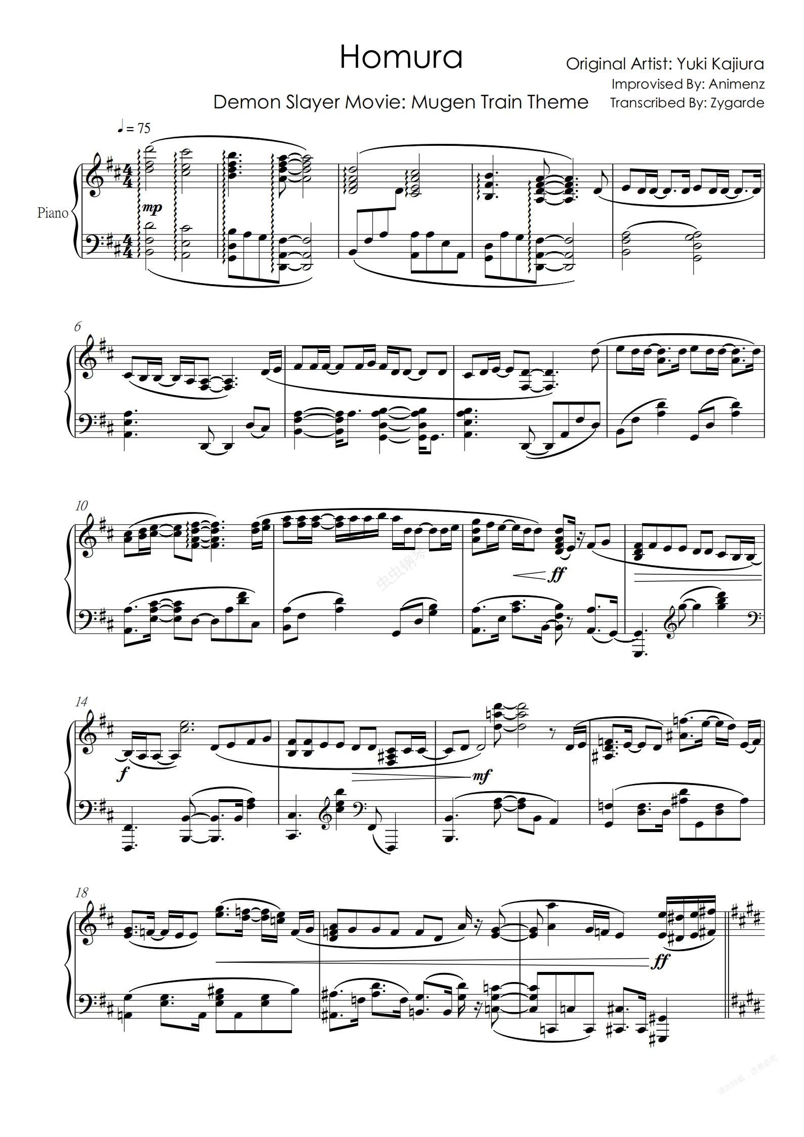 钢琴谱:Animenz - 鬼灭之刃电影版 ~ 无限列车篇 主题曲 - 炎 (2021 2/6 即兴版)