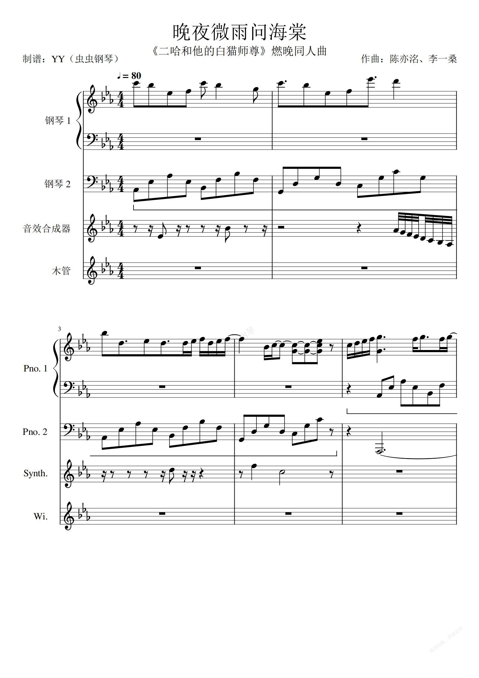 应 安歆 的要求,赶出了这份谱子,顺便增添了其它东西,听起来更像原曲。细心的人可能会看到有三行是钢琴弹的。其实自己弹的话可以只弹上面两行,第三行就是类似伴奏的,如果有朋友可以让朋友来帮你弹(前提是朋友也得会钢琴)。最后那里是自己的一点创意,并不与原曲一致。作品中某些部分可能并不是太像原曲,比如开始这里,大家可以告诉我怎么修改。大家也可以告诉我一些错的地方让我改正哟!