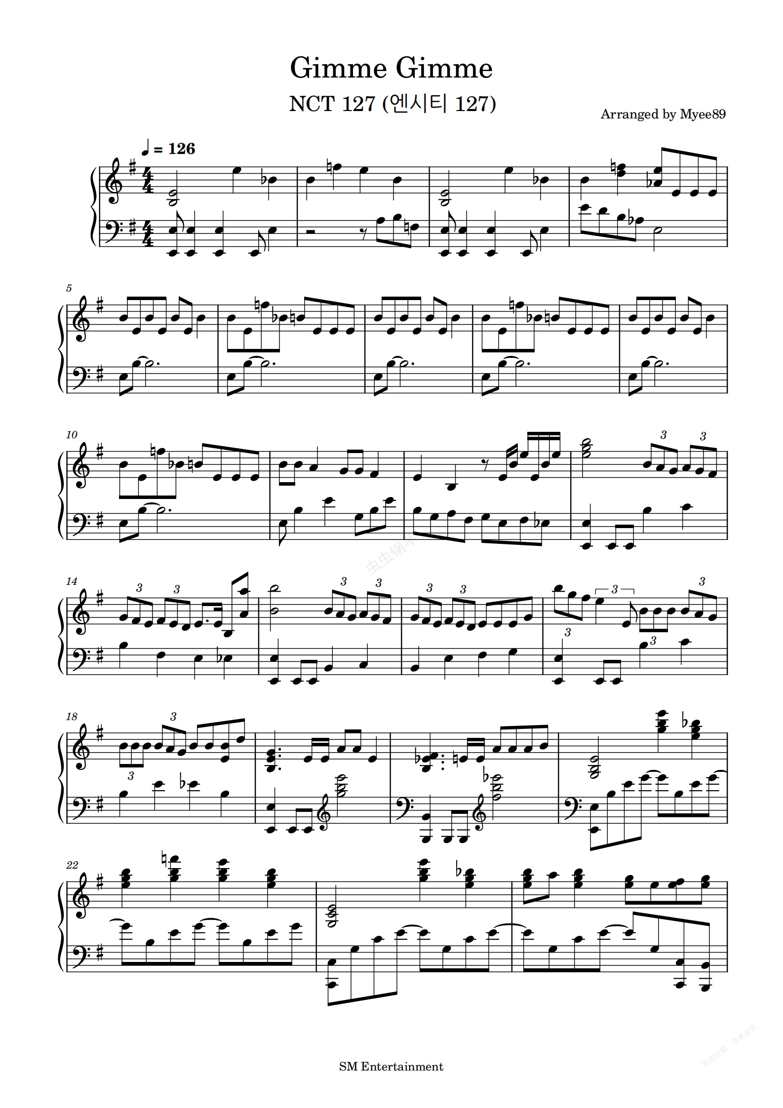 钢琴谱:NCT 127 - Gimme Gimme 钢琴谱