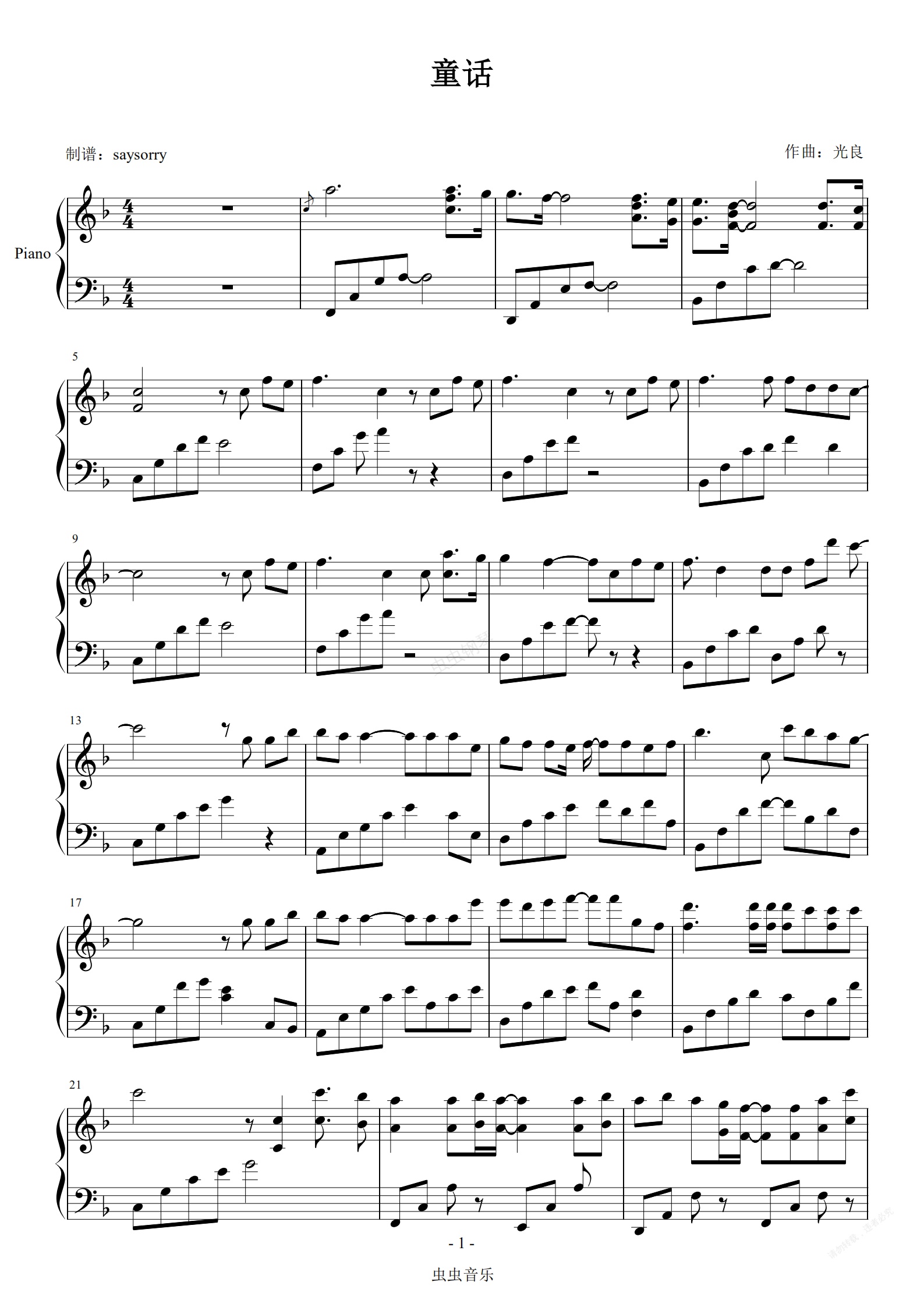 钢琴谱:《童话》超好听的钢琴独奏版本