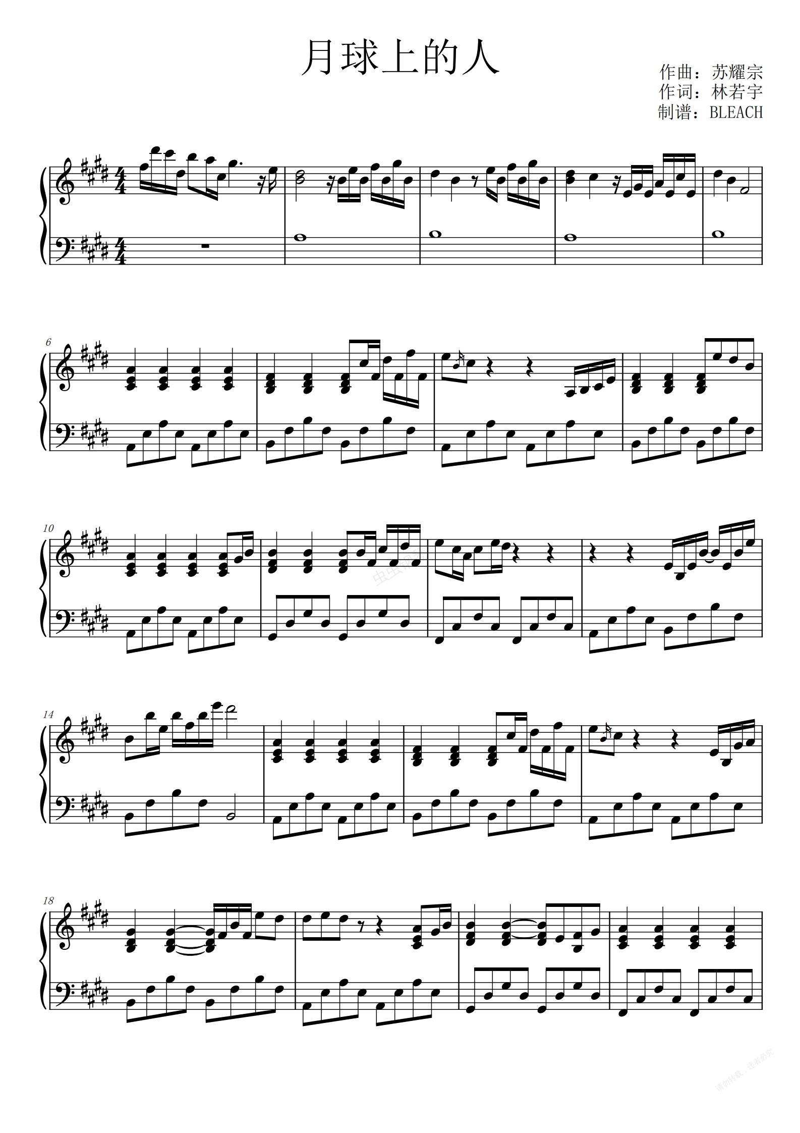 钢琴谱:月球上的人完美弹唱