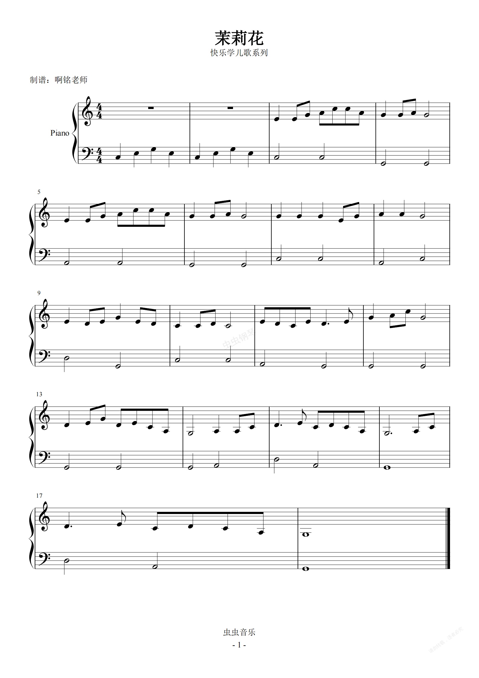 钢琴谱:茉莉花 小汤3 快乐学儿歌
