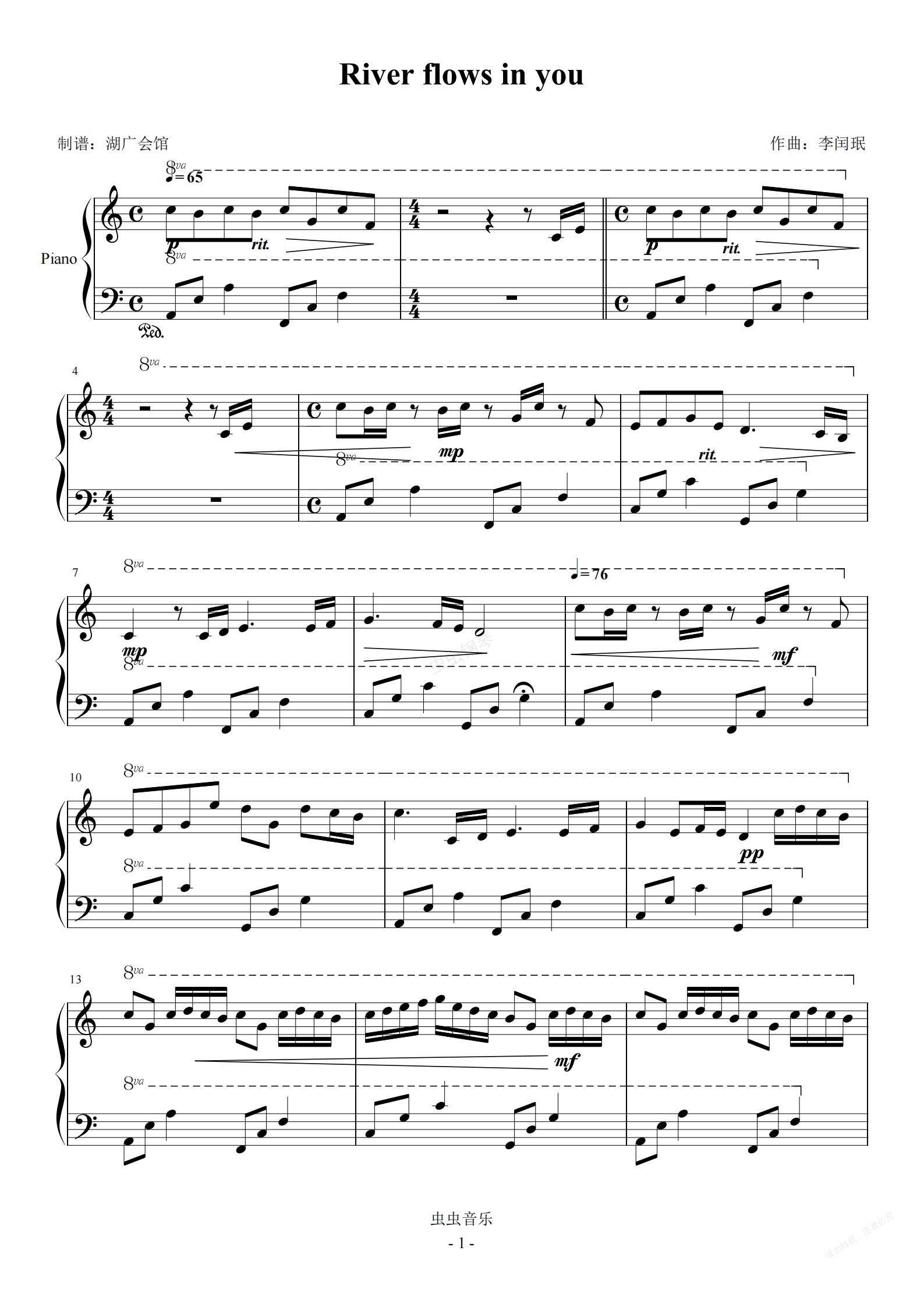 钢琴谱:River Flows In You你的心河 C调简单版 Yiruma