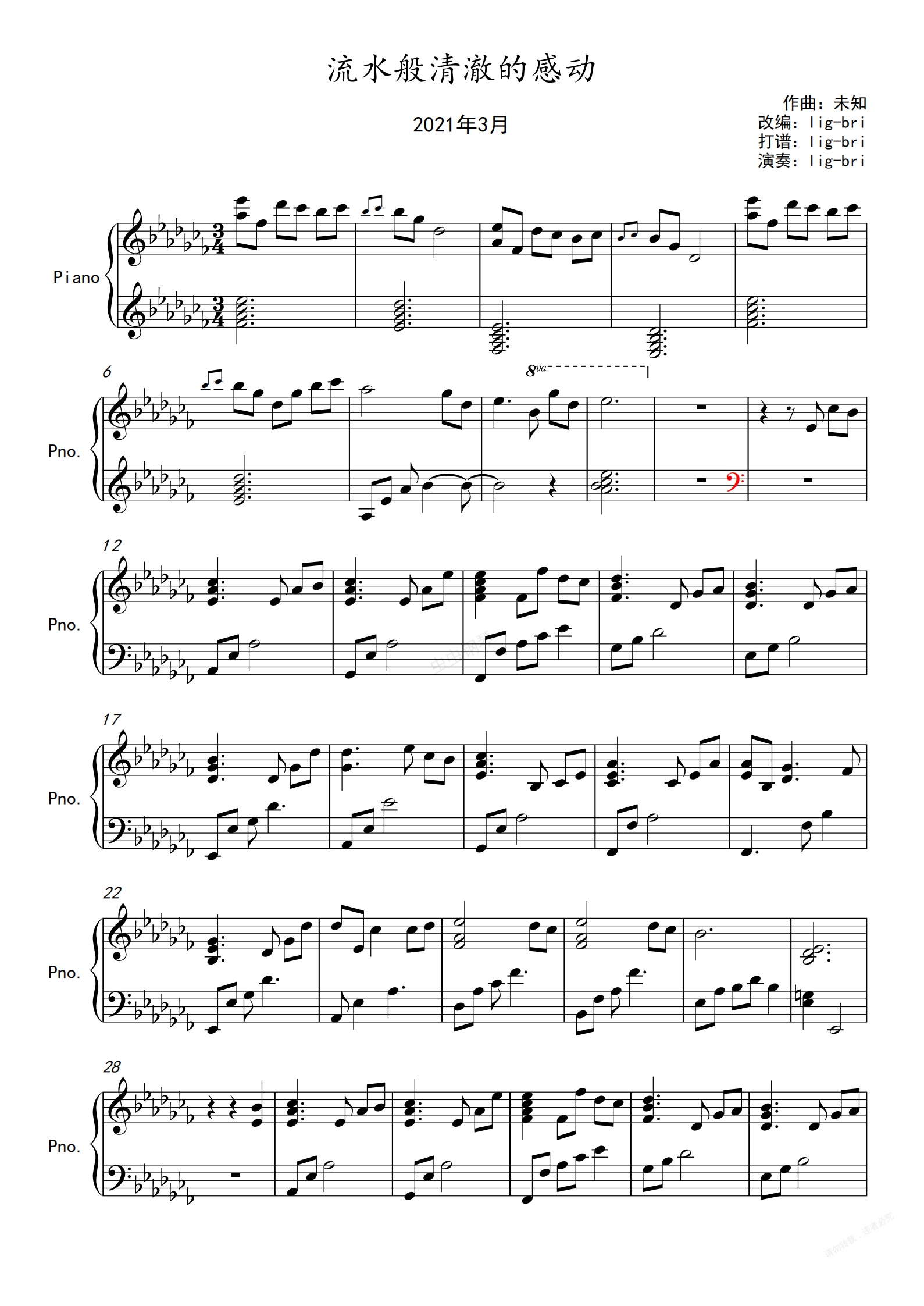 钢琴谱:《流水般清澈的感动(独奏版)》